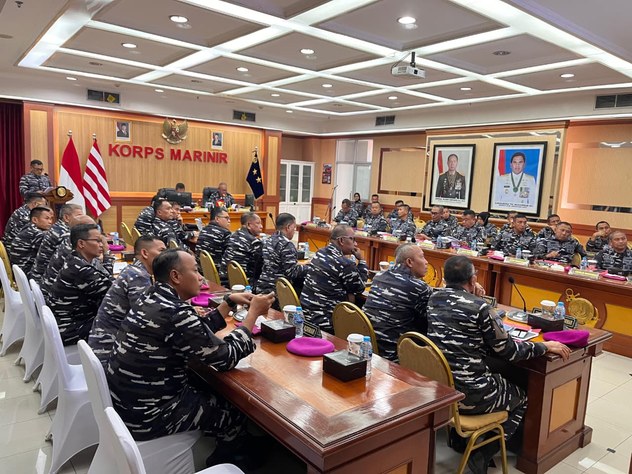 Dispen Kormar, TNI Angkatan Laut (Jakarta). Inspektur Korps Marinir (Ir Kormar) Brigadir Jenderal TNI (Mar) Ahmad Fajar, S.M. didampingi jajaran pimpinan Korps Marinir memimpin langsung, acara Taklimat Awal Audit Kinerja Inspektorat Jenderal TNI Angkatan Laut (Itjenal) Laksamana Muda TNI Achmad Wibisono S.E., CHRMP, Yang bertempat di Ruang rapat, gedung Agoes Soebekti Kesatrian Marinir Ali Sadikin Mako Kormar, Jl. Prajurit KKO Usman dan Harun No.40, Jakarta Pusat, Senin (15/09/2025).