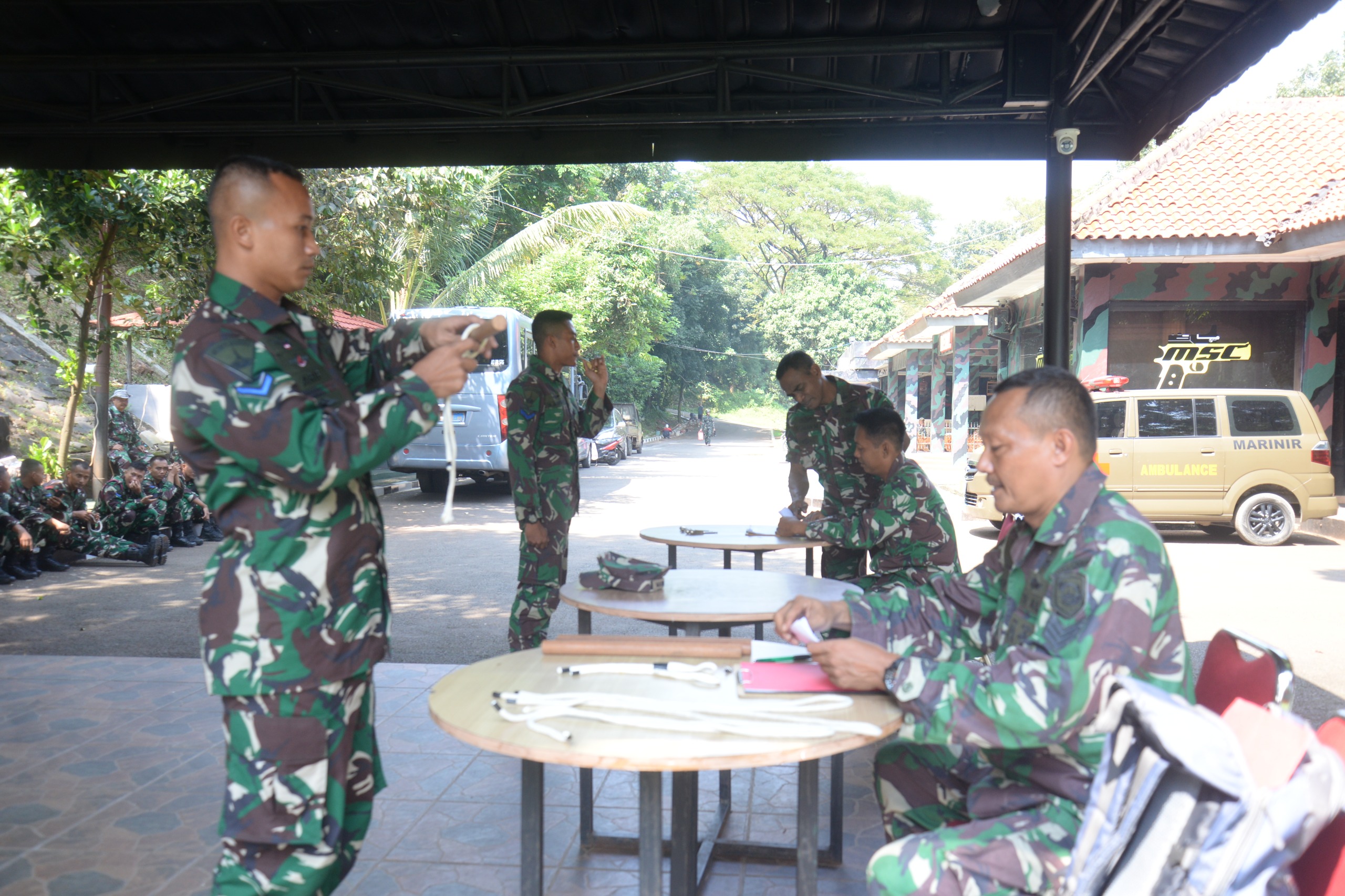 Dispen Kormar, TNI Angkatan Laut (Jakarta). Berlomba menjadi yang terbaik, sebanyak 13 prajurit Tamtama Korps Marinir bersaing menjadi yang terbaik di materi menembak laras panjang, pluit, tali-temali dan beladiri taktis yang dilaksanakan di lapangan Jusman Puger, Kesatrian Marinir Hartono Cilandak Jakarta Selatan. Rabu (03/07/2024).