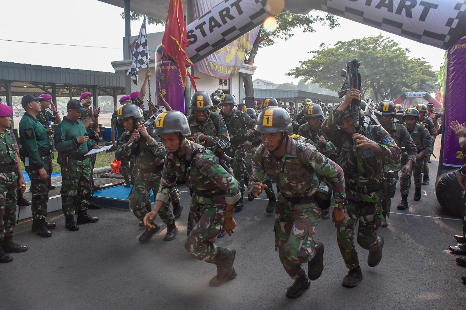 Dispen Kormar, TNI Angkatan Laut (Surabaya). Komandan Brigif 2 Marinir Kolonel Marinir Arip Supriyadi, S.H., M.M., M.Tr.Hanla secara langsung mengobarkan semangat bertanding atlet Pembinaan Satuan (Binsat) Brigif 2 Marinir menjelang start Lomba Cross Country Binsat Korps Marinir tahun 2024 di Kesatrian Marinir Sutedi Senaputra, Karangpilang, Surabaya, Jawa Timur. Sabtu (26/10/2024).