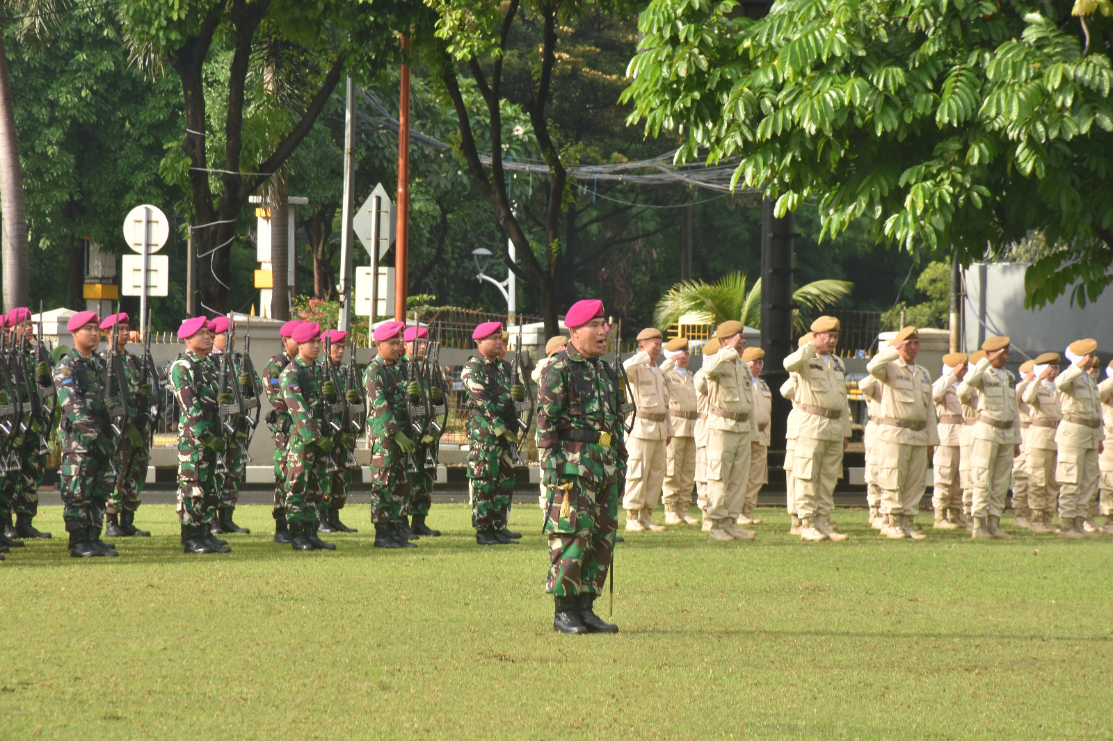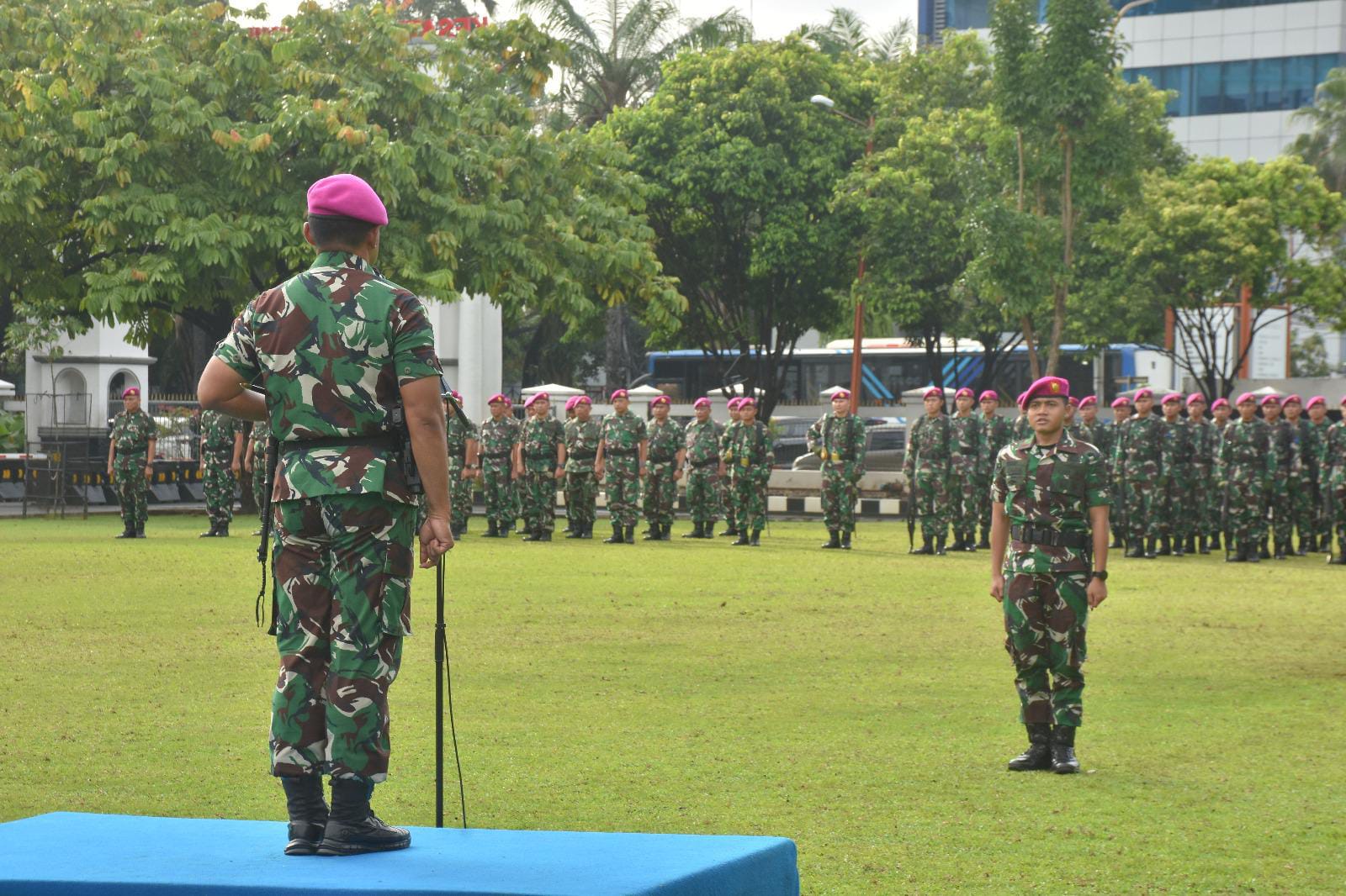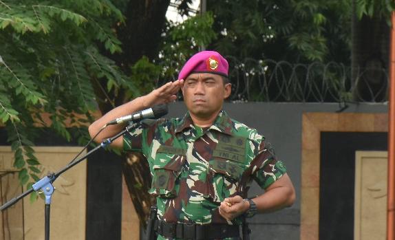 TNI Angkatan Laut. Dispen Kormar (Jakarta). Dandenma Mako Kormar Letnan Kolonel Marinir Fauzi Safiâi, S.A.P., M.Tr.Opsla. memimpin upacara bendera yang diikuti segenap prajurit dan PNS Markas Komando Korps Marinir (Mako Kormar), bertempat di Lapangan Apel Kesatrian Marinir Ali Sadikin Mako Kormar Jalan Prajurit KKO Usman dan Harun No. 40 Kwitang, Jakarta Pusat, Senin (24/02/2025).