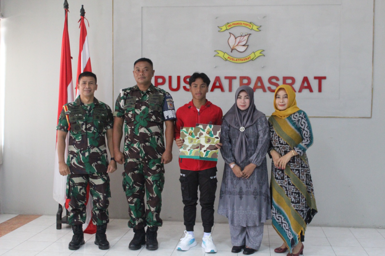 Dispen Kormar (Pasuruan). Komandan Komando Latih Korps Marinir (Dankolatmar) Kolonel Marinir Dede Harsana, S.A.P., M.Han berikan reward bagi ananda Sultan Anjasmara putra dari Peltu Marinir Budi Prasetyo anggota Puslatpasrat yang telah berhasil merebut juara satu pada event Kepri Navy Open Water swimming Competition 2024 yang diselenggarakan di pantai Tugu Daun Kepri 08 Juni kemarin, dari ruang rapat Puslatpasrat Gunungsari, Surabaya, Rabu (19/06/2024).