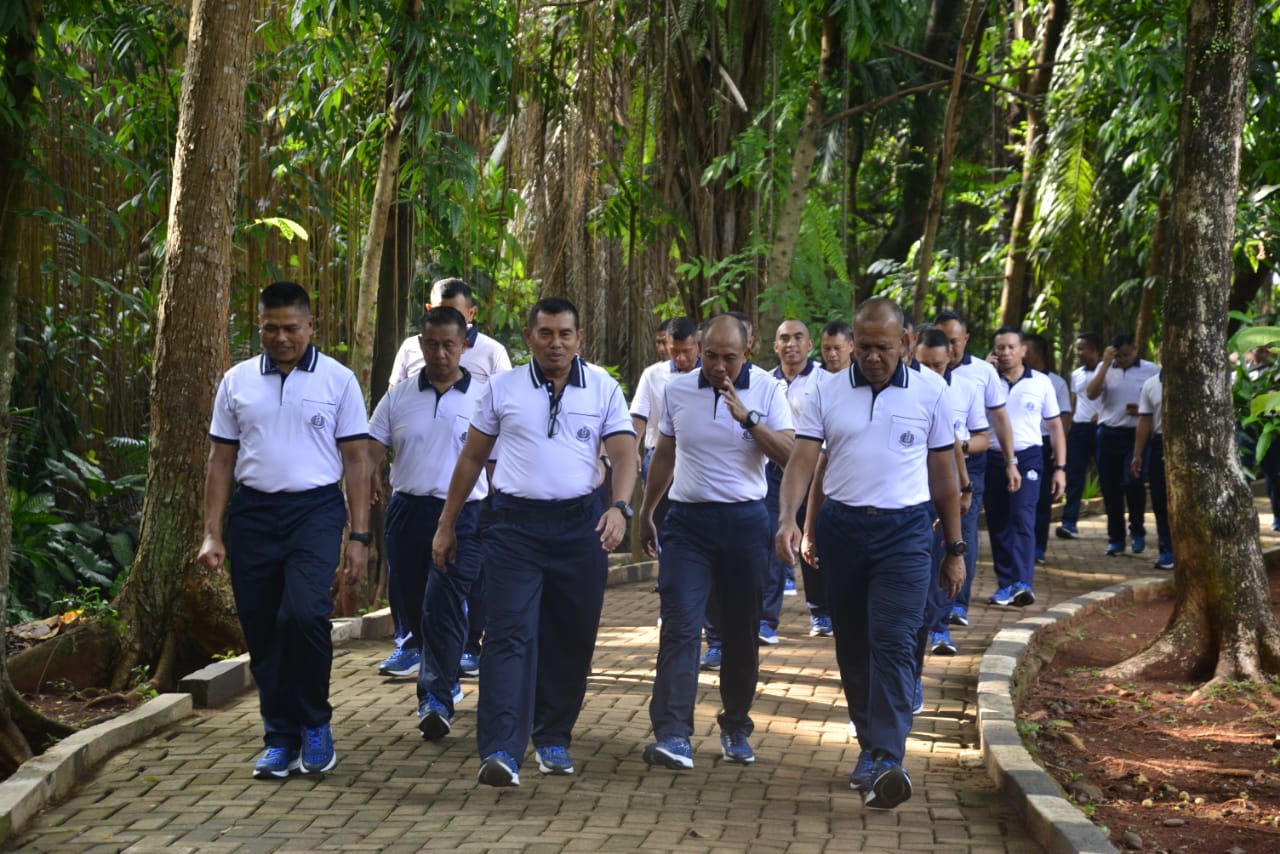 Dispen Kormar TNI Angkatan Laut (Jakarta). Komandan Korps Marinir (Dankormar) Mayor Jenderal TNI (Mar) Dr. Endi Supardi, S.E., M.M., M.Tr.Opsla., CHRMP., CRMP., beserta Pejabat Utama Kormar melaksanakan jalan sehat mengelilingi Ksatrian Marinir Hartono untuk menjaga kebugaran tubuh dilanjutkan dengan menembak pistol di lapangan Tembak Pistol Jusman Puger Kesatrian Marinir Hartono Cilandak, Jakarta Selatan. Jum'at (25/10/2024).