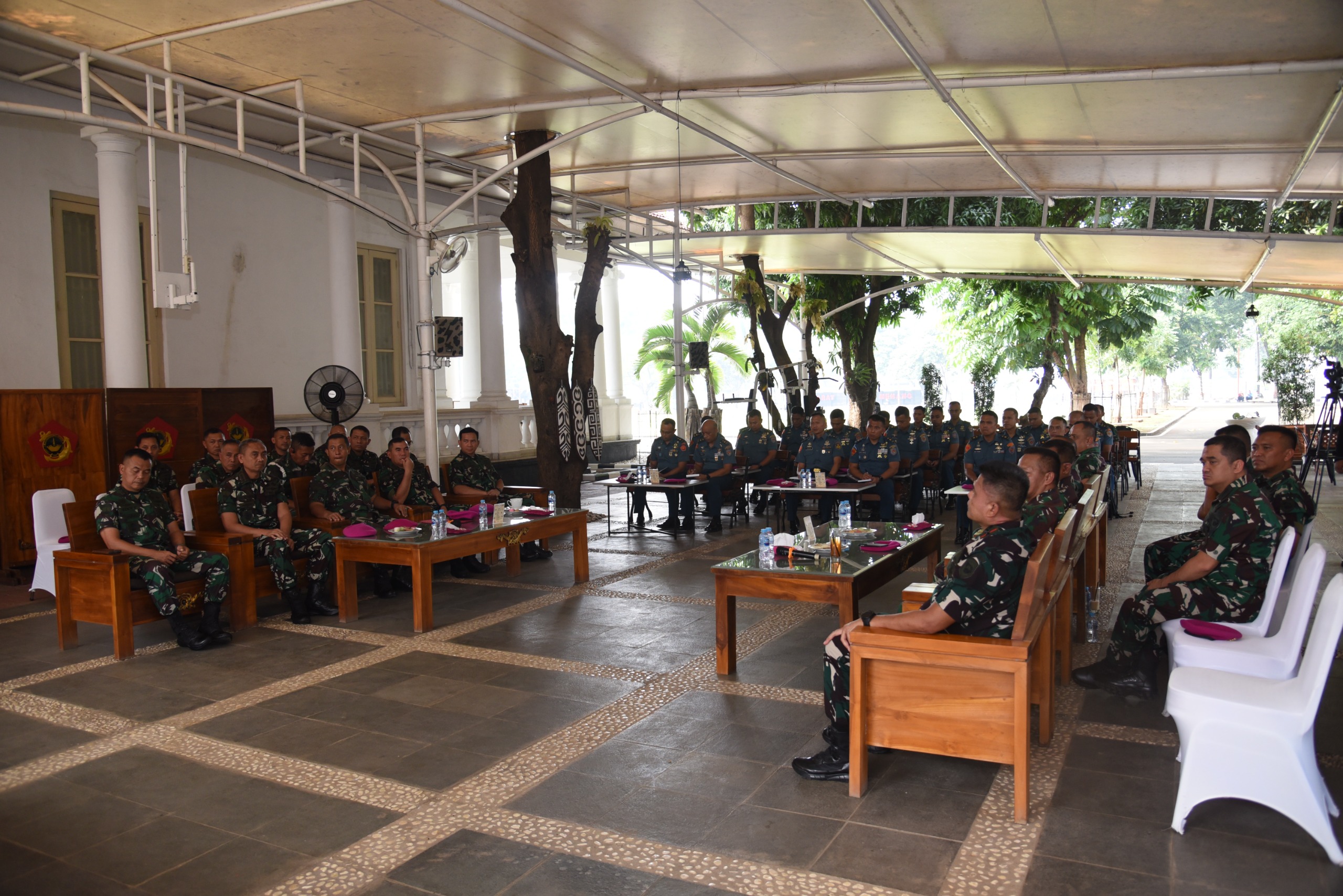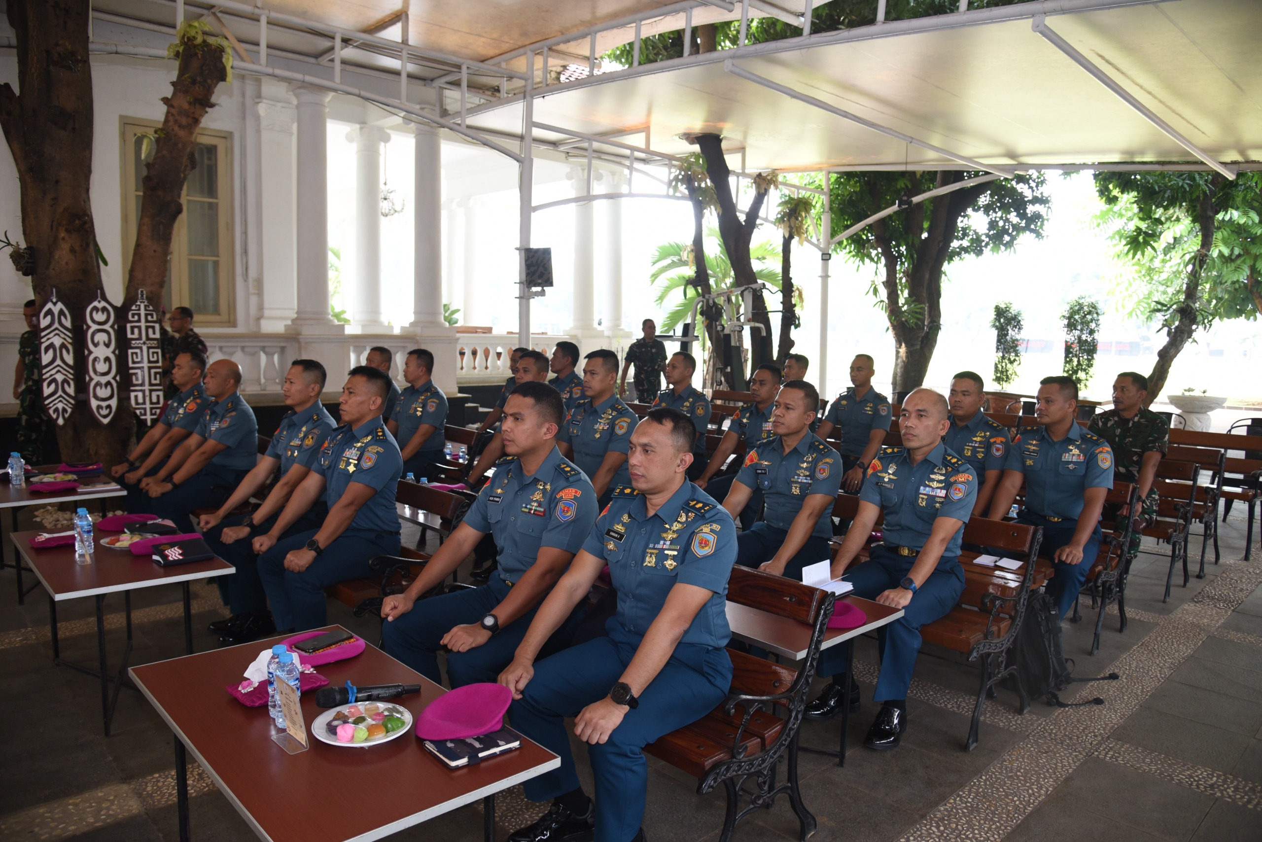 Dispen Kormar TNI Angkatan Laut (Jakarta). Komandan Korps Marinir (Dankormar) Mayor Jenderal TNI (Mar) Dr. Endi Supardi, S.E., M.M., M.Tr.Opsla., CHRMP., CRMP., menerima 20 mantan siswa Pendidikan Reguler (Dikreg) dari Sekolah Staf dan Komando TNI Angkatan Laut (Seskoal) dan Sekolah Staf dan Komando TNI Angkatan Darat (Seskoad) Tahun 2025, di Taman Wanarata Markas Komando Korps Marinir (Mako Kormar), Jakarta Pusat. Kamis (05/05/2025).