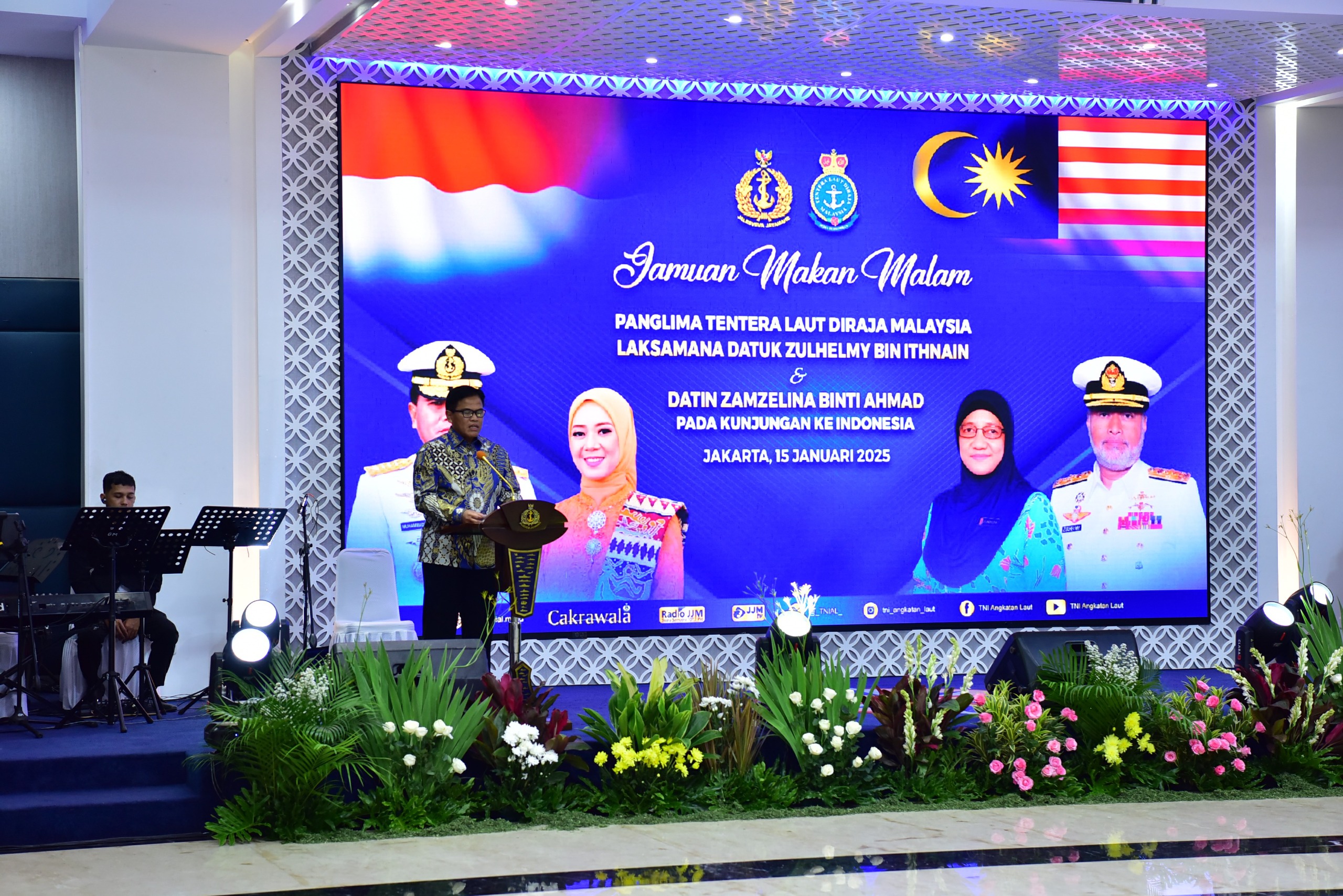 Pada kesempatan tersebut, Kasal menyampaikan rasa terimakasih yang mendalam kepada Panglima Tentera Laut Diraja Malaysia beserta istri dan pejabat TLDM yang telah berkenan memenuhi undangan untuk hadir dalam Jamuan makan malam di Wisma Elang Laut, selain itu Kasal juga mengharapkan agar tali silaturahmi dapat terus terjalin antara TNI AL dengan TLDM.