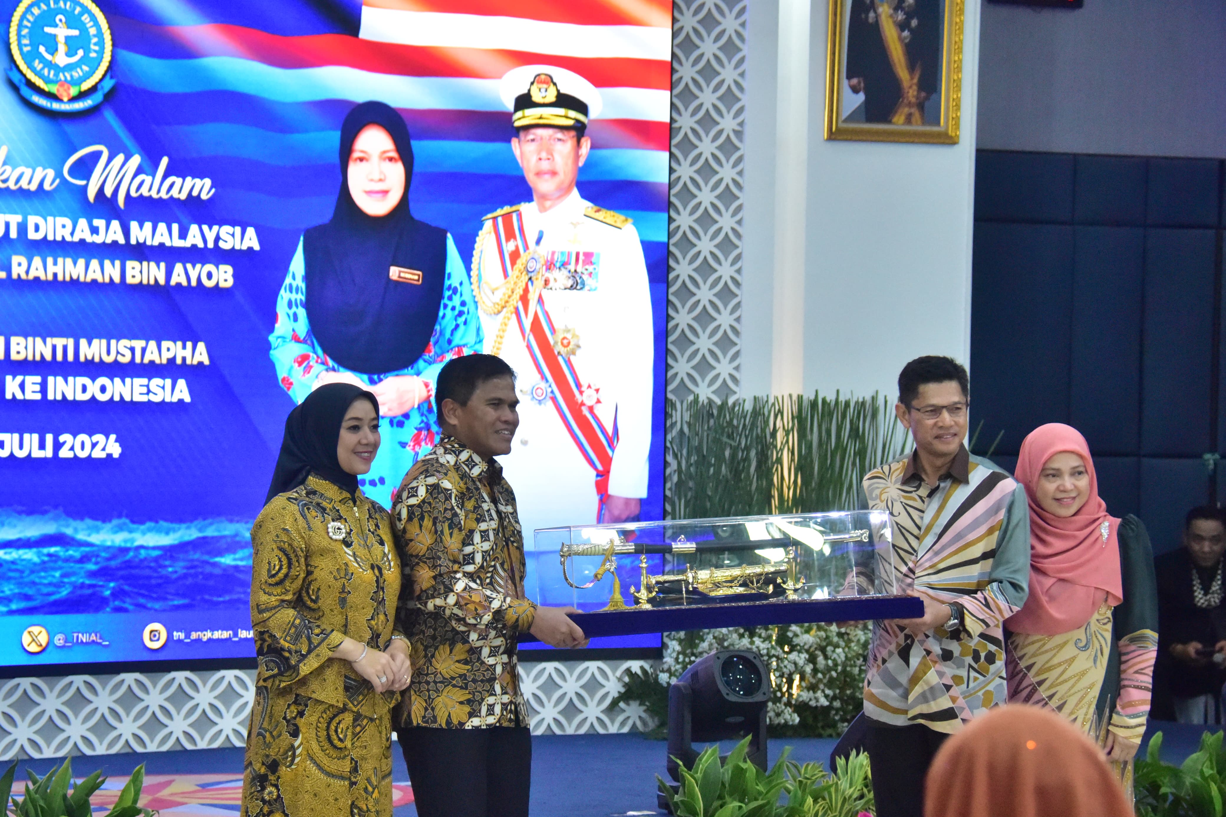 Dispen Kormar TNI Angkatan Laut (Jakarta). Komandan Korps Marinir (Dankormar) Mayor Jenderal TNI (Mar) Endi Supardi, S.E., M.M., M.Tr.Opsla., CHRMP., CRMP., didampingi Ketua Gabungan Jalasenanstri Korps Marinir Ny. Nana Endi Supardi, mendampingi Kepala Staf Angkatan Laut (Kasal) Laksamana TNI Dr. Muhammad Ali, S.E., M.M., M.Tr.Opsla., bersama Ketua Umum Jalasenastri Ny. Fera Muhammad Ali, melaksanakan Jamuan makan malam dengan Panglima Tentara Laut Diraja Malaysia Admiral Tan Sri Abdolrahman bin Ayob didampingi Puan Sri Dr. Norinah binti Mustapa, di Wisma Elang Laut, jalan Pangeran Diponegoro, Menteng, Jakarta Pusat. Senin (22/07/2024).