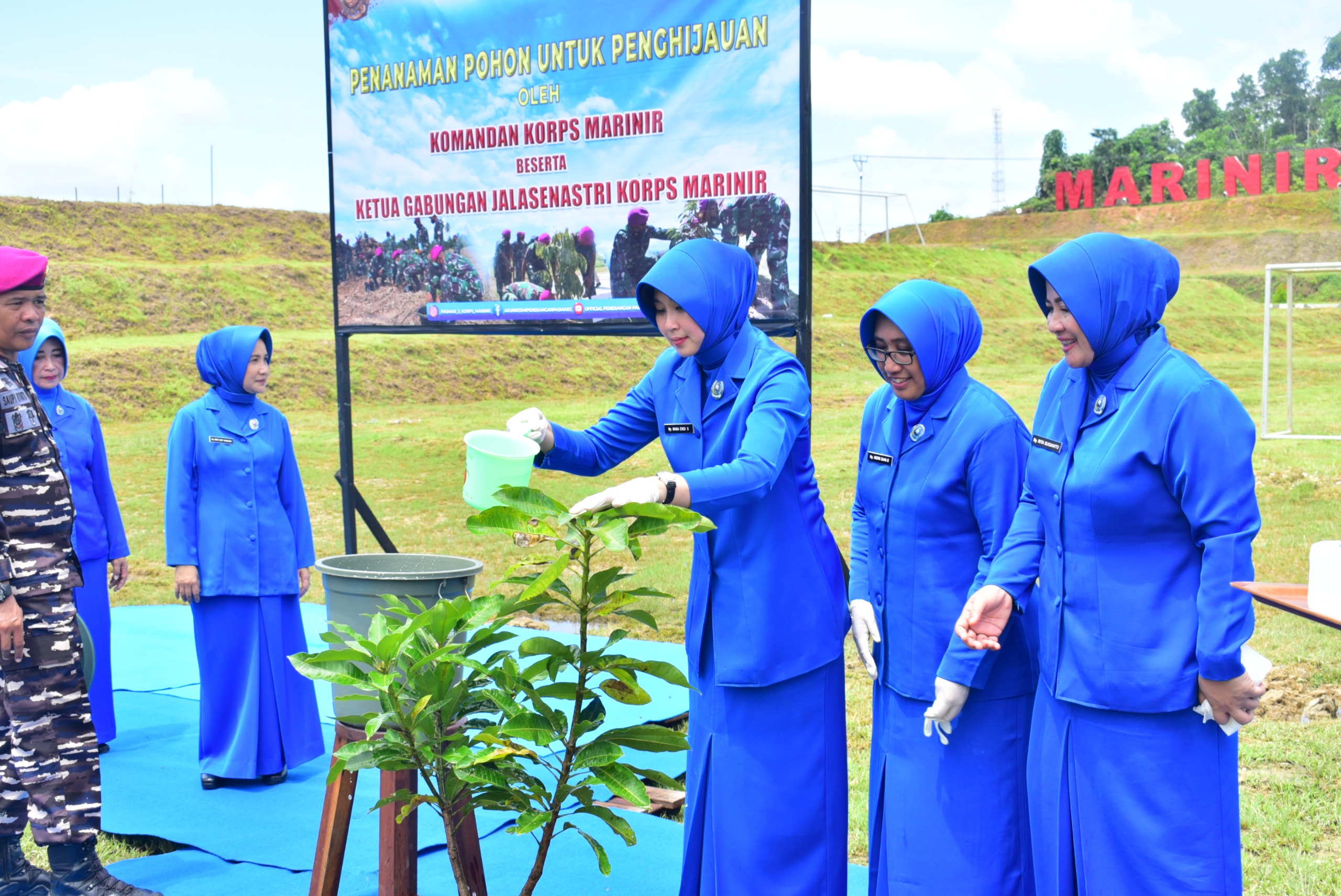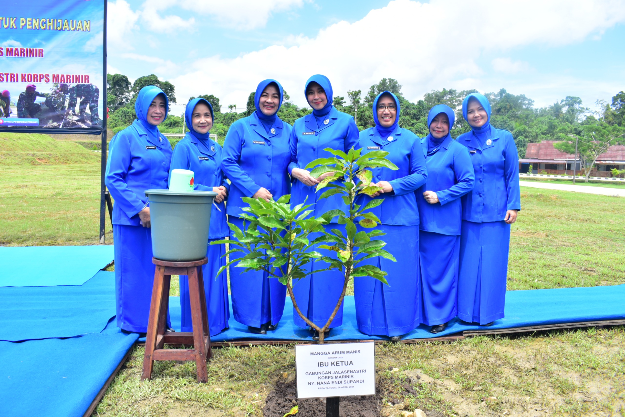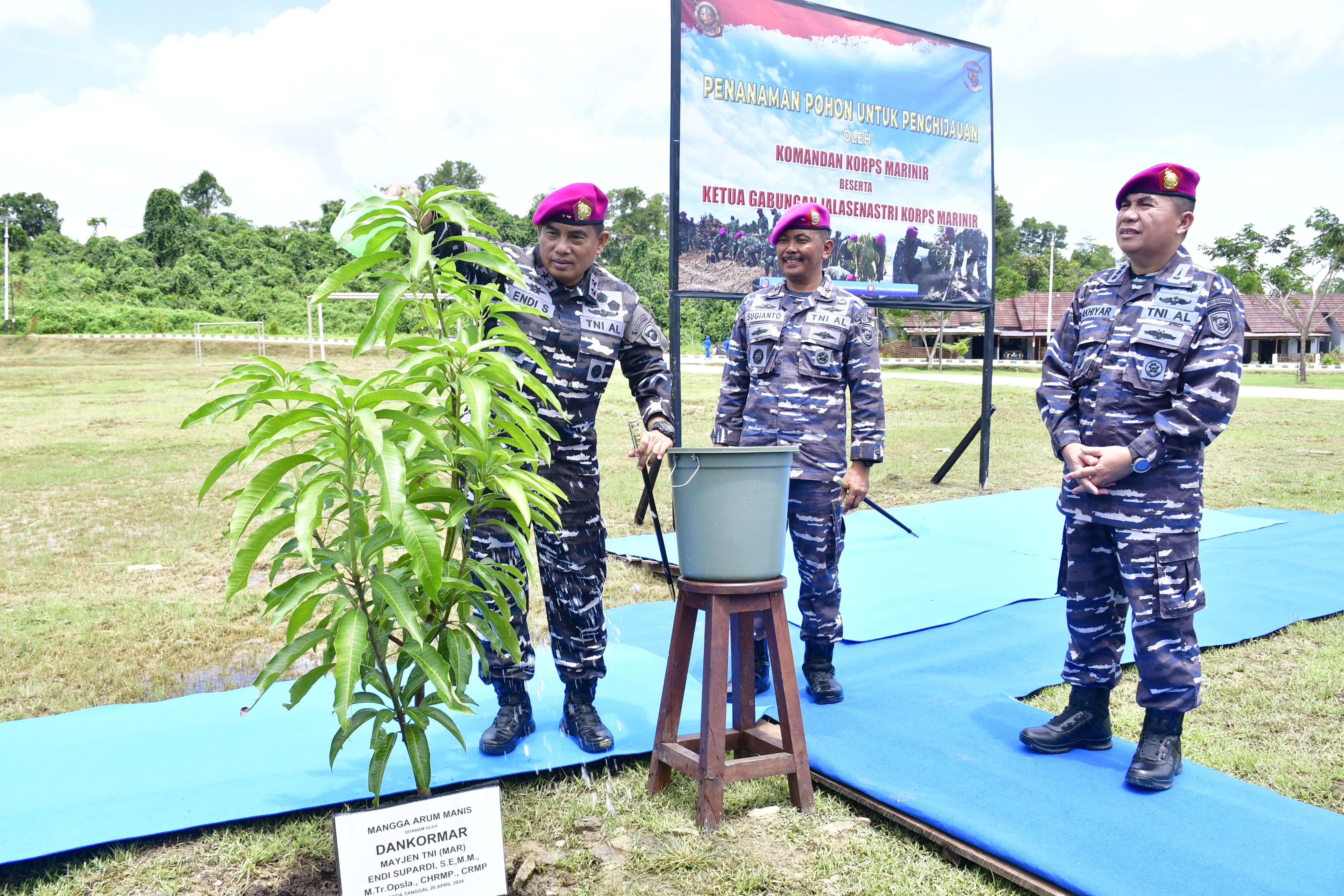 Dispen Kormar TNI Angkatan Laut (Sorong). Dalam rangka penghijauan, Komandan Korps Marinir Mayjen TNI (Mar) Endi Supardi, S.E., M.M., M.Tr.Opsla., CHRMP., CRMP., didampingi Ketua PG Jalasenastri Korps Marinir Ny. Nana Endi Supardi melaksanakan penanaman pohon mangga di Kesatrian Agoes Soebekti Mako Pasmar 3, Jl. Sorong-Klamono, Km. 16, Distrik Klaurung, Kota Sorong, Papua Barat Daya. Jumat (26/04/2024).