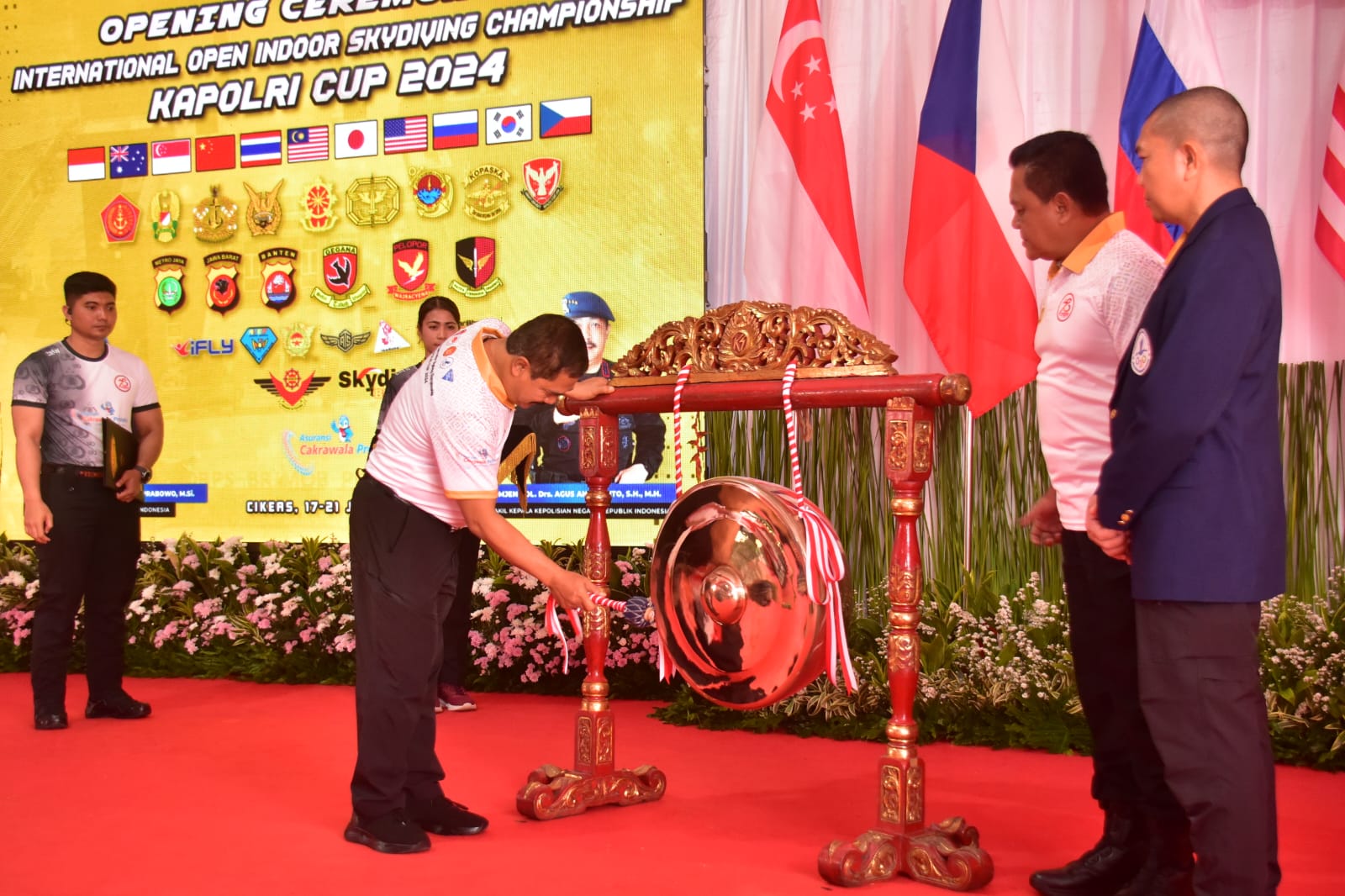 Turut hadir dalam acara Pembukaan International Open Indoor Skydiving Championship Kapolri Cup tahun 2024 diantaranya; Ketua Komite Terjun Payung Federasi Aero Sport Indonesia (FASI) Irvan Zuladry, S.H., M.M., perwakilan dari Kementerian Pemuda dan Olahraga RI, perwakilan dari Kementerian Pariwisata dan Ekonomi Kreatif RI, perwakilan dari KONI Pusat, para tamu undangan dan para Atlet Skydiving.