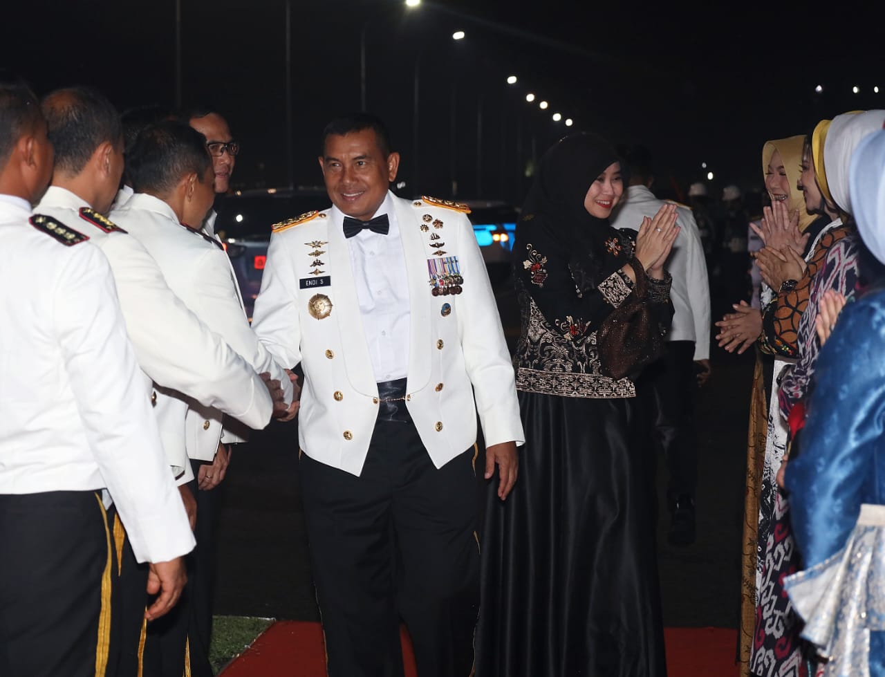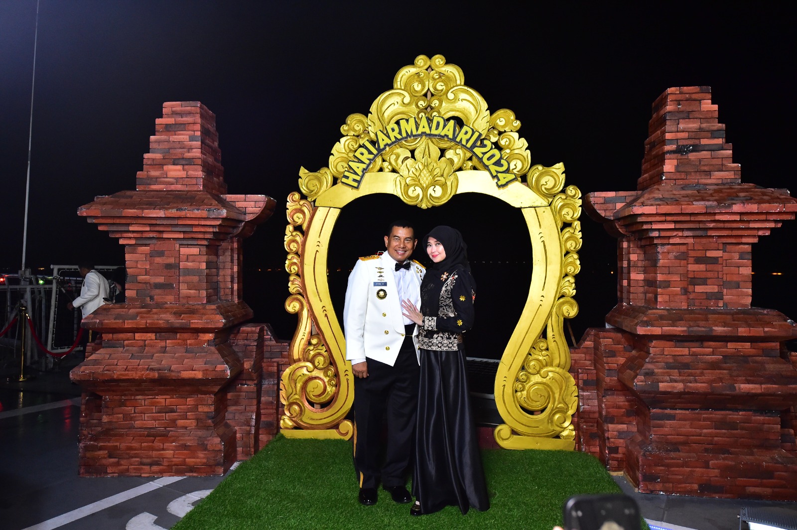 Dispen Kormar, TNI Angkatan Laut (Surabaya). Komandan Korps Marinir (Dankormar) Mayor Jenderal TNI (Mar) Dr. Endi Supardi, S.E., M.M., M.Tr.Opsla., CHRMP., CRMP. didampingi Ketua Gabungan Jalasenastri Korps Marinir Ny. Nana Endi Supardi menghadiri Gala Dinner dalam rangka memperingati Hari Armada Republik Indonesia (RI) tahun 2024 di Geladak KRI dr. Radjiman Wedyodiningrat-992, Dermaga Semampir Timur Koarmada II, Ujung, Surabaya. Rabu Malam (04/12/2024).