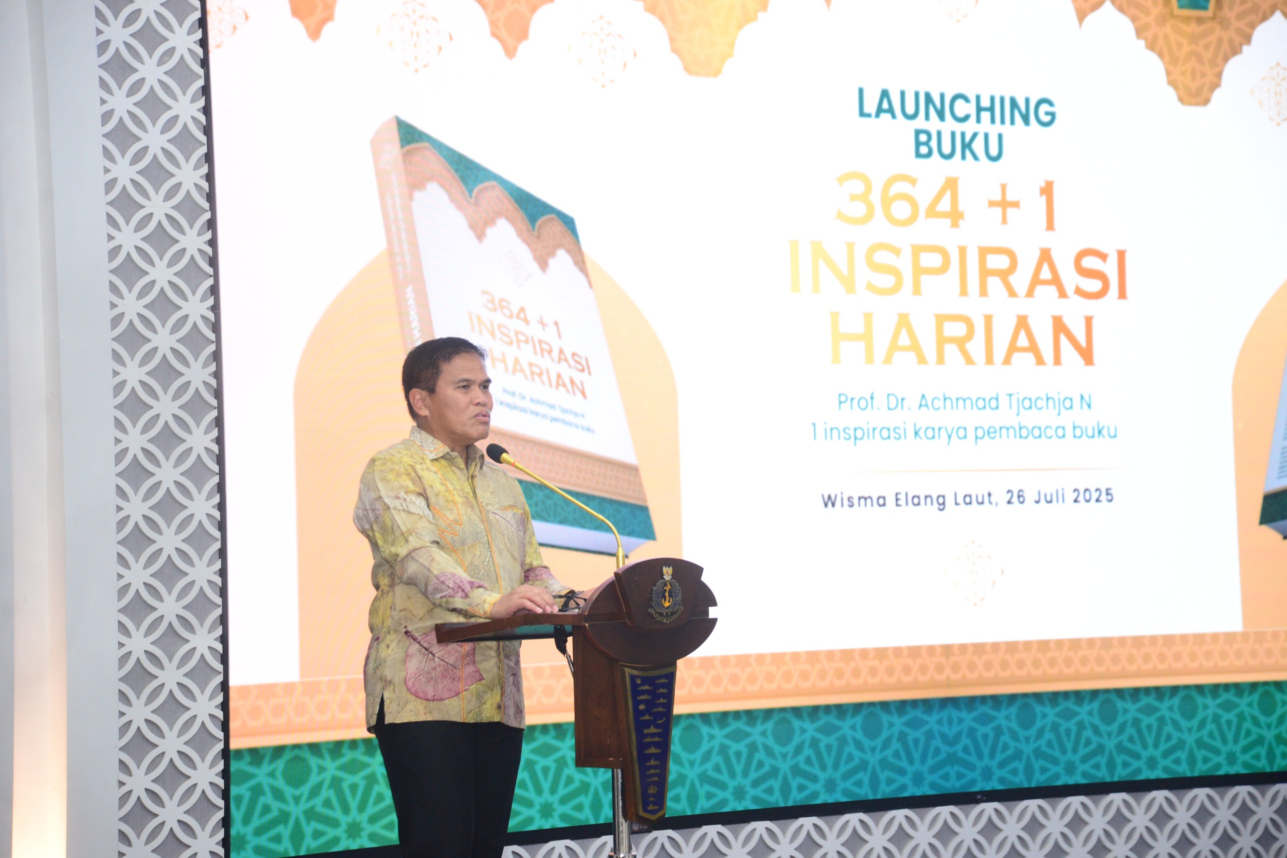 Dispen Kormar TNI Angkatan Laut (Jakarta). Komandan Korps Marinir (Dankormar) Mayor Jenderal TNI (Mar) Dr. Endi Supardi, S.E., M.M., M.Tr.Opsla., CHRMP., CRMP. menghadiri acara Launching buku 364+1 Inspirasi Harian karya Prof. Dr. KH. Achmad Tjachja Nugraha, bertempat di Wisma Elang Laut, Menteng, Jakarta Pusat. Sabtu (26/07/2025).