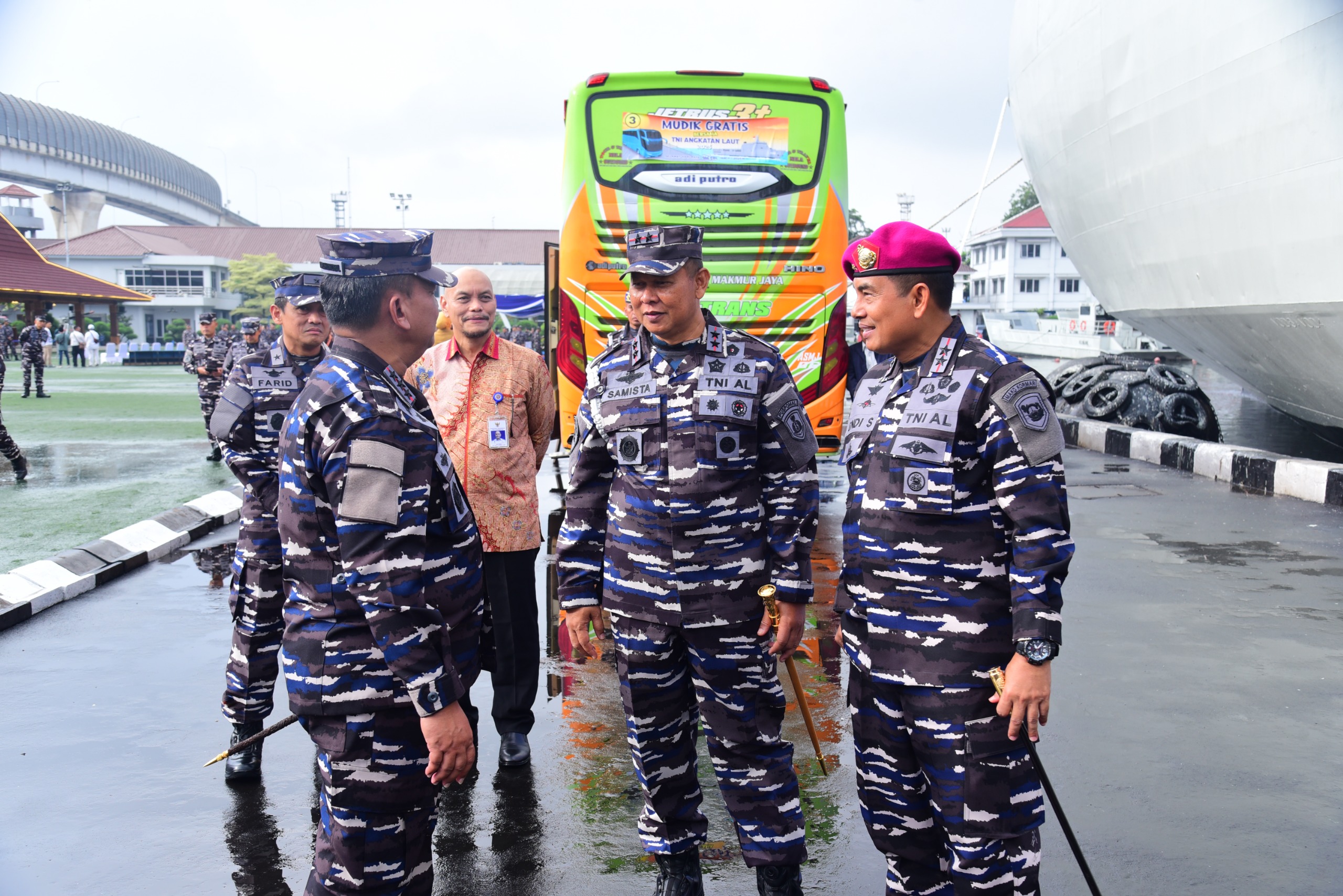 Dispen Kormar, TNI Angkatan Laut (Jakarta). Komandan Korps Marinir (Dankormar) Mayor Jenderal TNI (Mar) Dr. Endi Supardi, S.E., M.M., M.Tr.Opsla., CHRMP., CRMP., menghadiri pelepasan mudik gratis bersama TNI AL, yang dilepas langsung Kepala Staf Angkatan Laut (Kasal) Laksamana TNI Dr. Muhammad Ali, S.E., M.M., M.Tr.Opsla., bertempat di Mako Kolinlamil Jakarta Utara Kamis (27/03/2025).