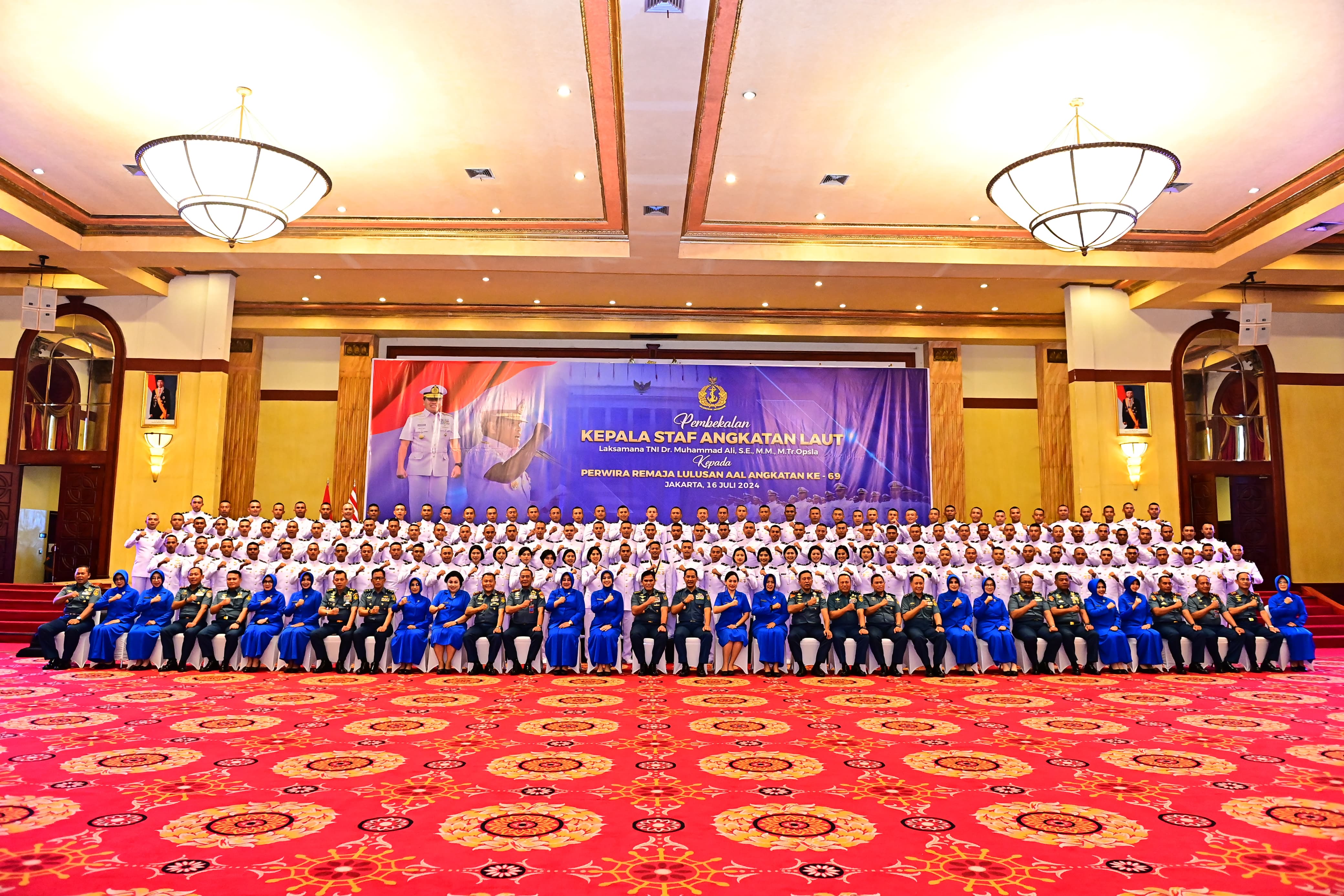 Dispen Kormar TNI Angkatan Laut (Jakarta). Komandan Korps Marinir (Dankormar) Mayor Jenderal TNI (Mar) Endi Supardi, S.E., M.M., M.Tr.Opsla., CHRMP., CRMP., didampingi oleh Ketua Gabungan Jalasenastri Korps Marinir Ny. Nana Endi Supardi menghadiri kegiatan pembekalan Kepala Staf TNI Angkatan Laut (Kasal) Laksamana TNI Dr. Muhammad Ali, S.E., M.M., M.Tr.Opsla. kepada Perwira Remaja Lulusan AAL angkatan LXIX, bertempat di Gedung Balai Samudera Kelapa Gading, Jakarta Utara, Senin (16/07/2024)