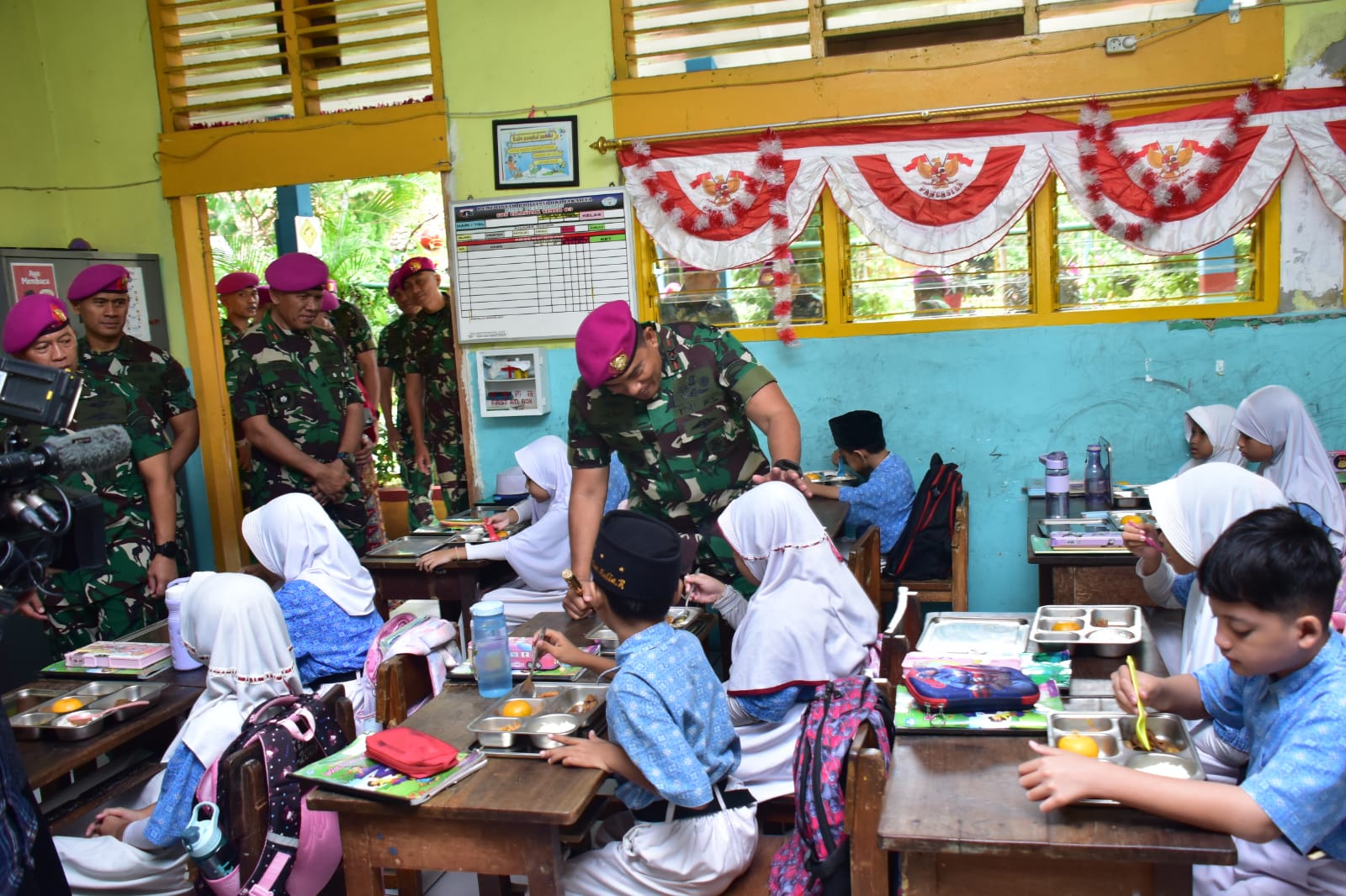 Di SDN 03 Cilandak Timur disela-sela kegiatan membagikan MBG, Dankormar berbincang-bincang serta mengajak siswa untuk berdoa sebelum mulai makan. âGimana enak makanannya?â dan para siswa-siswi SD serentak menjawab bahwa makanan yang di sajikan Korps Marinir tersebut enak.