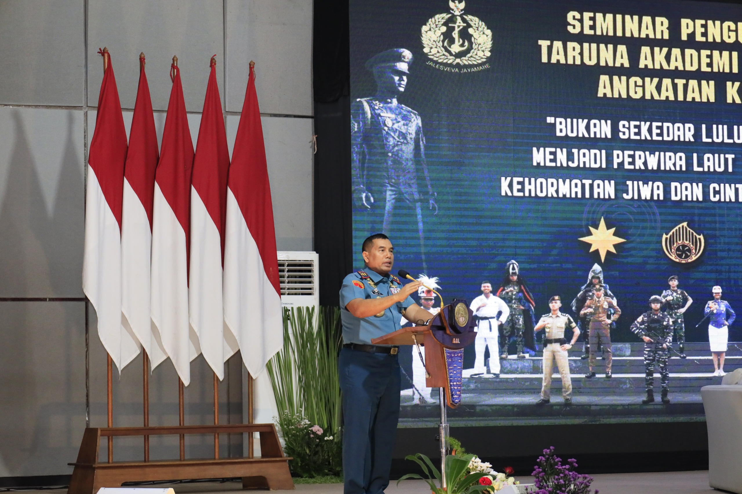 Kegiatan pembekalan tersebut dikemas dalam bentuk seminar dengan tema âBukan Sekadar Lulus, Tapi Terlahir Kembali: Menjadi Perwira Laut yang Siap Mengabdi dengan Kehormatan Jiwa dan Cinta Tanpa Batas untuk Bangsa.â Seminar ini merupakan bagian dari upaya penguatan integritas bagi para Taruna AAL menjelang pengangkatan mereka sebagai Perwira TNI AL.