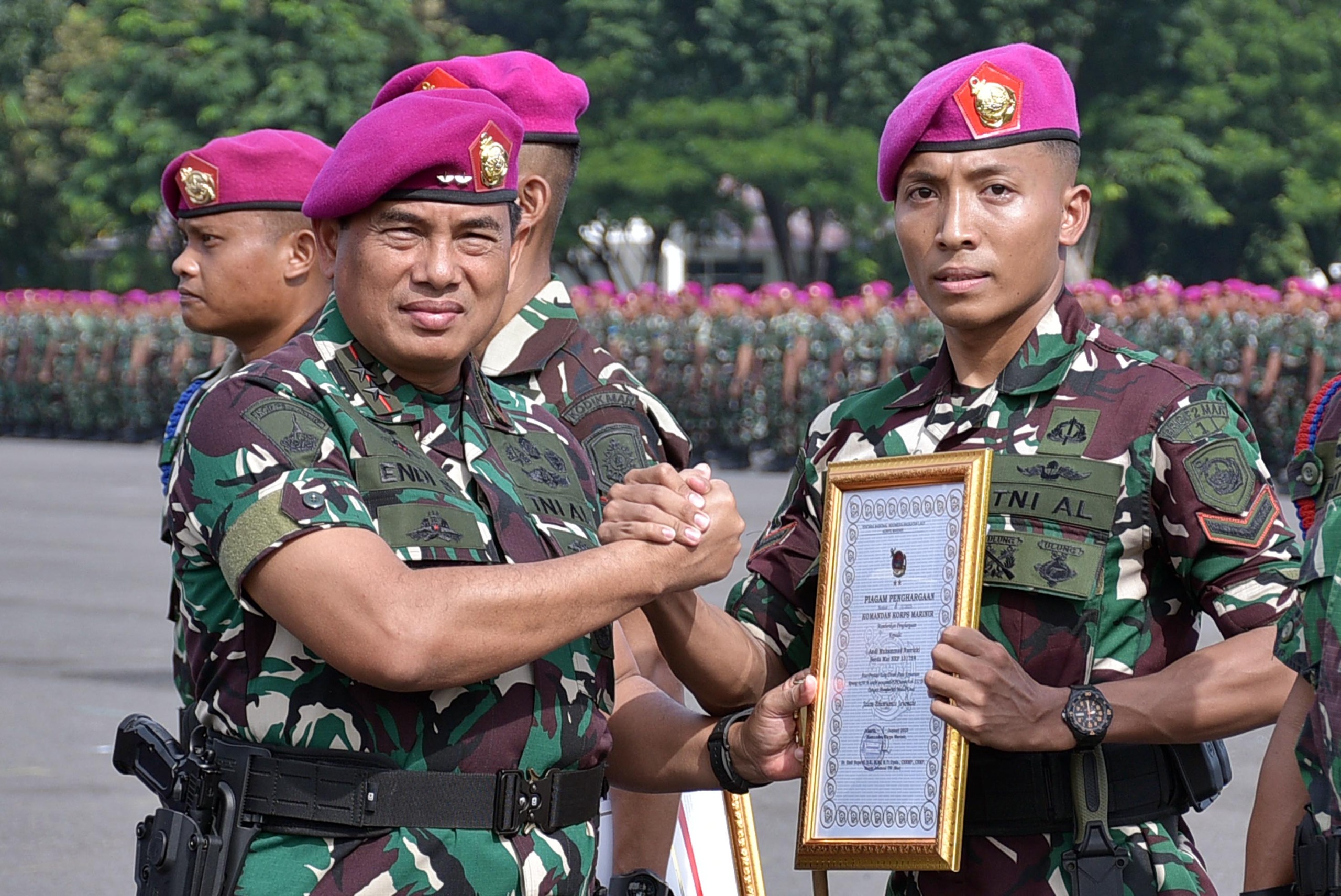 Reward juga diberikan kepada Koptu Mar Heri Cahyono dari Yontaifib 2 Mar peraih Medali Perak Terjun Payung PON SumutâAceh XXI tahun 2024, Pratu Mar Kizbullloh dari Menart 2 Mar peraih Medali Perak Muaythai kategori Meyboran/seni PON SumutâAceh XXI tahun 2024, Pratu Mar Wiji Lestari dari Brigif 2 Marperaih Medali Perunggu Muaythai kategori Fight kelas 63,5 kg senior putra PON SumutâAceh XXI tahun 2024 dan Serda Mar Yeni Susanto dari Menbanpur 2 Marinir peraih Medali Emas Klaten Open Nasional Archery Competition kategori Eliminasi Beregu Barebow Umum 50M Putra.