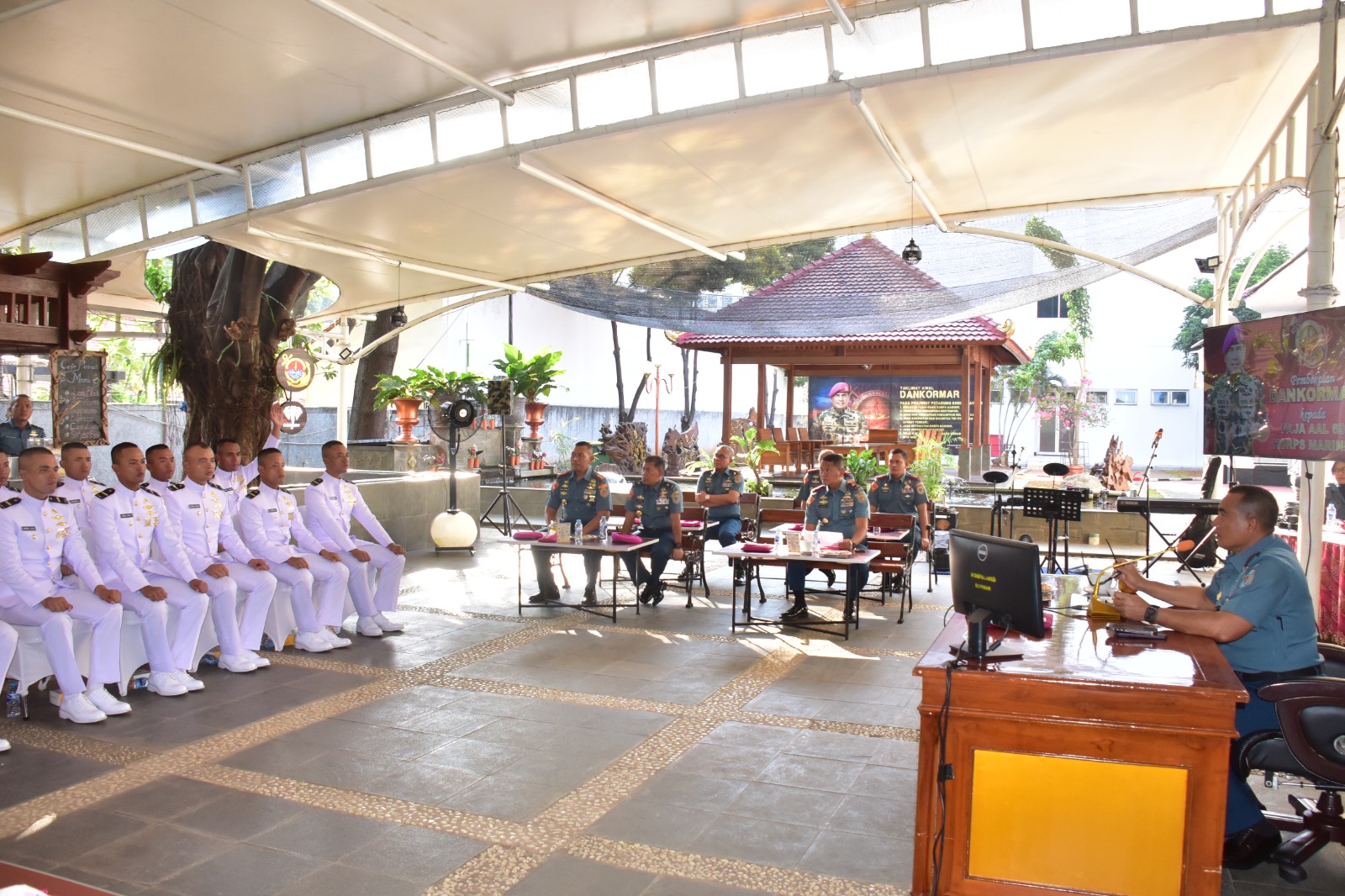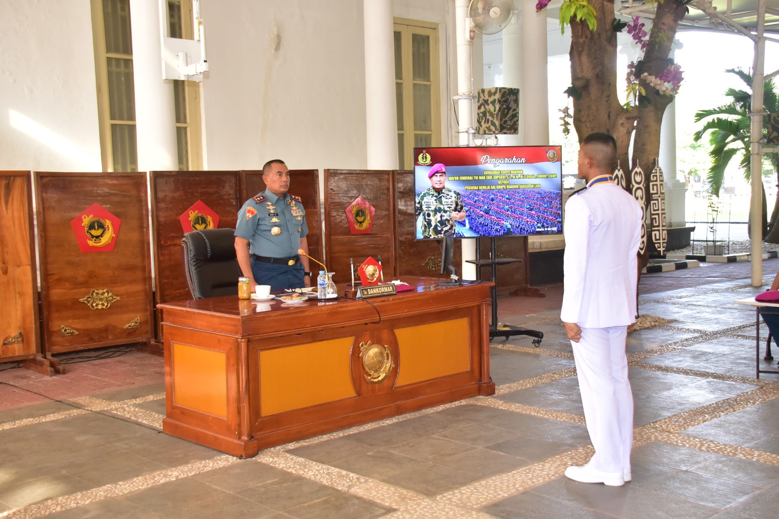 Dalam pengarahannya Komandan Korps Marinir menyampaikan ucapan selamat datang dan selamat bergabung di Korps Marinir. âCiptakan hubungan senior dan junior, bentuk Team Work yang kuat dengan anggotamu jadikan Pletonmu Pleton terhebat di Kompi dan Batalyon, warnai Batalyonmu dengan kemampuan Perwira Remaja yang tanggap, tanggon dan trengginas,â pekik orang nomor satu di Korps Marinir.