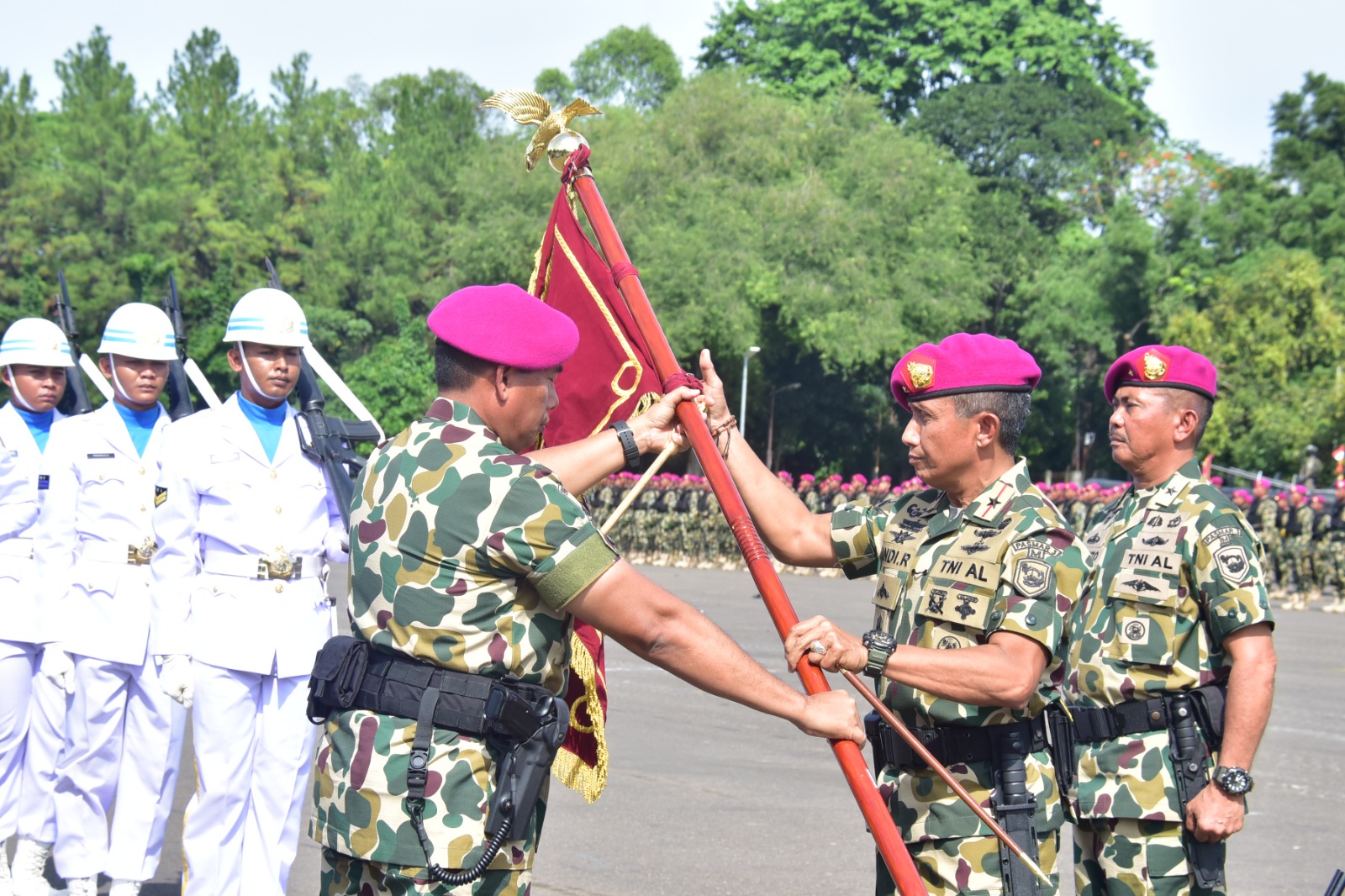 Dispen Kormar TNI Angkatan Laut (Jakarta). Komandan Korps Marinir (Dankormar) Mayor Jenderal TNI (Mar) Dr. Endi Supardi, S.E., M.M., M.Tr.Opsla., CHRMP., CRMP., memimpin serah terima jabatan Komandan Pasmar 3 Sorong dari Brigjen TNI (Mar) Sugianto, S.Sos., M.M., M.Tr.Opsla kepada Brigjen TNI (Mar) Andi Rahmat M., bertempat di lapangan apel Brigif 1 Kesatrian Marinir Haryono, Cilandak Jakarta Selatan. Jumâat (22/11/2024).