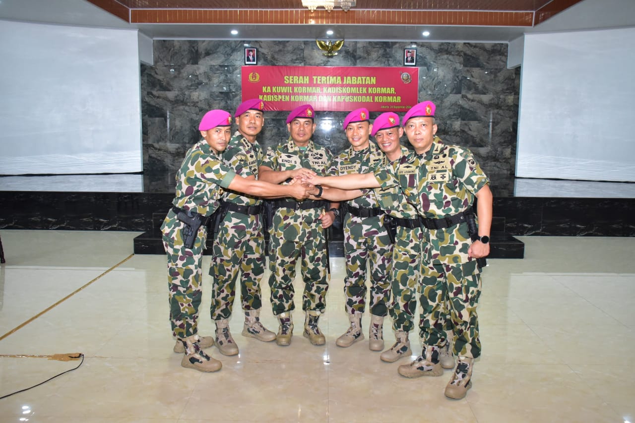 Dispen Kormar TNI Angkatan Laut ( Jakarta). Komandan Korps Marinir (Dankormar), Mayor Jenderal TNI (Mar) Dr. Endi Supardi, S.E., M.M., M.Tr.Opsla., CHRMP., CRMP. memimpin serah terima enam jabatan strategis Korps Marinir yaitu Wakil Komandan Korps Marinir (Wadankormar), Komandan Pasmar 2 (Danpasmar 2), Kepala Keuangan Wilayah (Ka Kuwil) Kormar, Kepala Dinas Komunikasi dan Elektronika (Kadiskomlek) Kormar, Kepala Dinas Penerangan (Kadispen) Kormar, Kepala Pusat Komando dan Pengendalian (Kapuskodal) Kormar, yang dilaksanakan di Brigif 1 Marinir Kesatrian Marinir Hartono Cilandak, Jakarta Selatan. Selasa (24/09/2024).