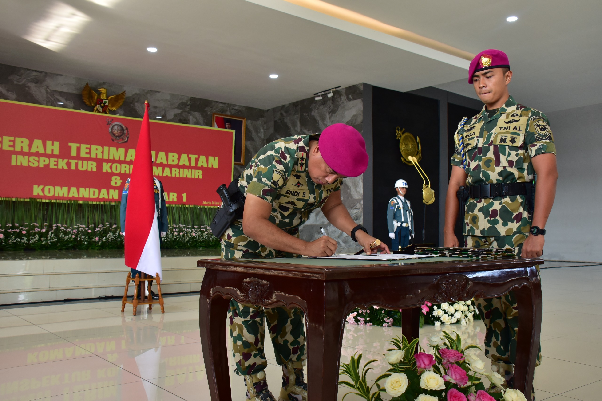 Jabatan Ir Kormar diserahterimakan dari Brigadir Jenderal TNI (Mar) Try Subandiyana, S.H. kepada Brigadir Jenderal TNI (Mar) Ahmad Fajar, S.M. sedangkan Jabatan Danpasmar 1 dari Brigadir Jenderal TNI (Mar) Umar Farouq, S.A.P., CHRMP., M.Tr.Opsla., M.Han., kepada Kolonel Marinir Ena Sulaksana, S.E. Kedua pejabat lama ini selanjutnya akan menyelesaikan pendidikan P3N Angkatan XXV Lemhanas RI.