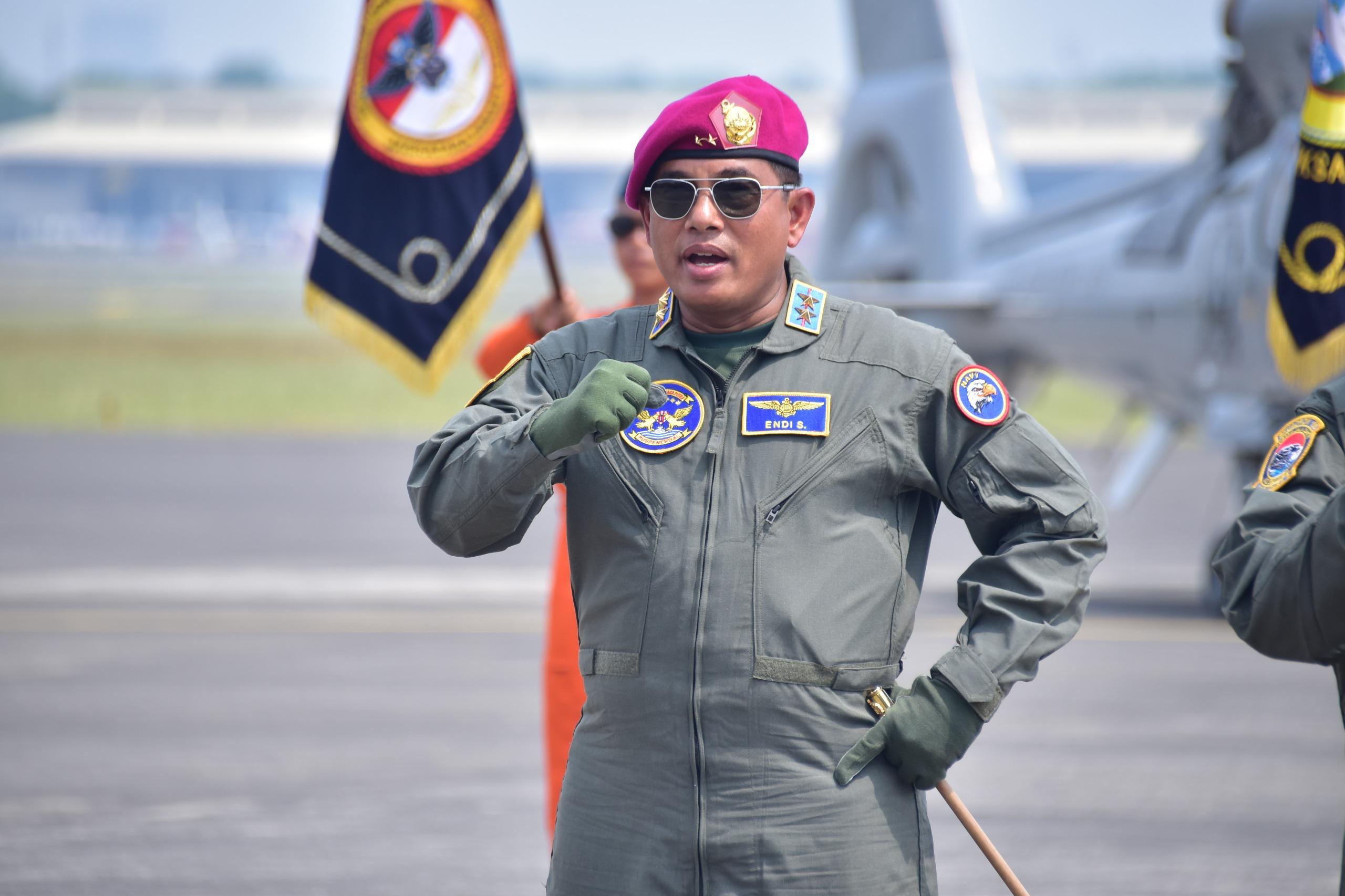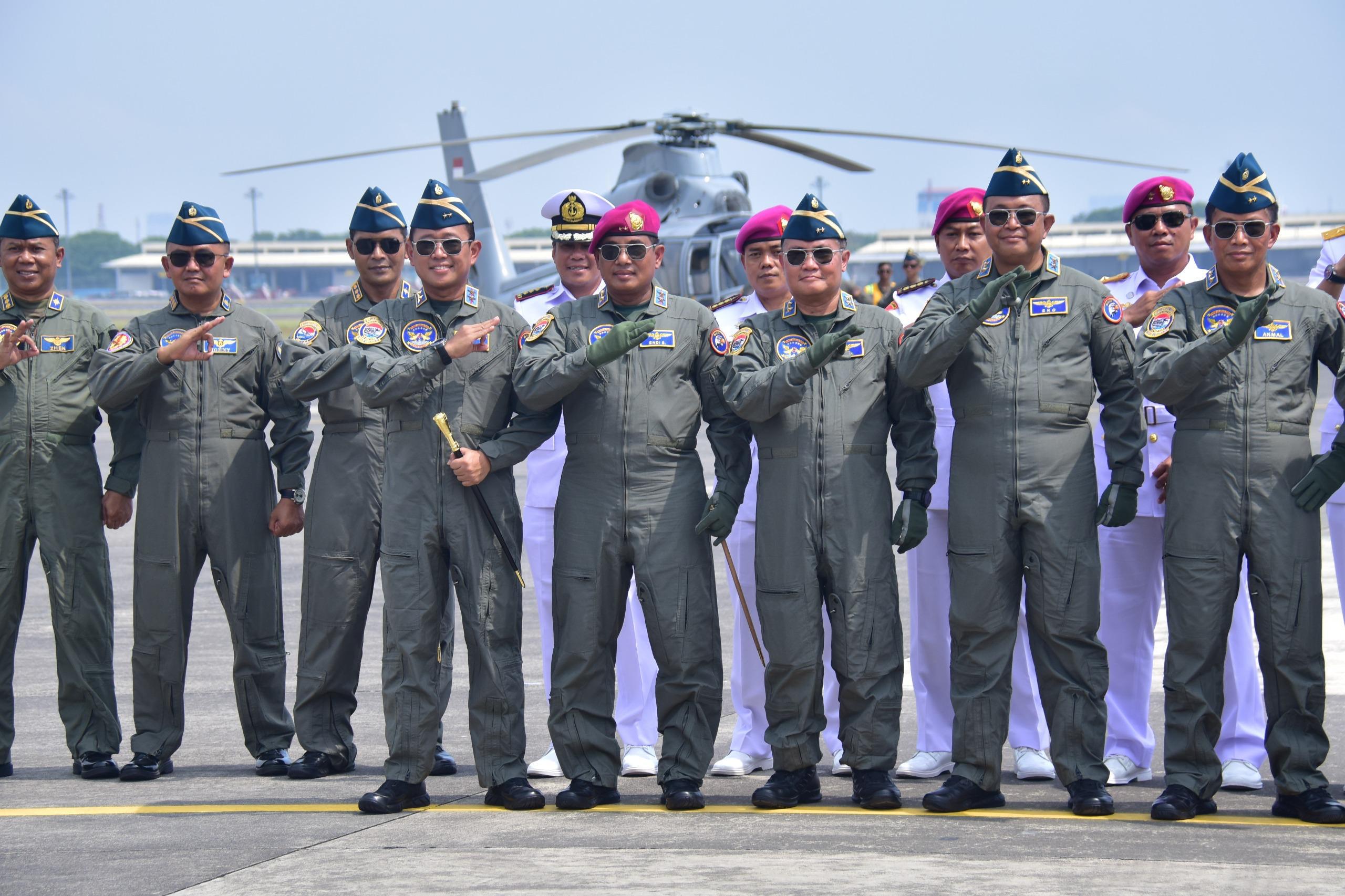 Dispen Kormar TNI Angkatan Laut (Surabaya). Komandan Korps Marinir (Dankormar) Mayor Jenderal TNI (Mar) Dr. Endi Supardi, S.E., M.M., M.Tr.Opsla., CHRMP., CRMP. beserta 10 Pati (Perwira Tinggi) TNI Angkatan Laut menerima Brevet Kehormatan Penerbangan TNI AL yang disematkan langsung oleh Komandan Pusat Penerbangan TNI Angkatan Laut (Danpuspenerbal) Laksda TNI Sisyani Jaffar, S.M. mewakili Kepala Staf Angkatan Laut (Kasal) Laksamana TNI Dr. Muhammad Ali, S.E., M.M., M.Tr.Opsla. bertempat di Baseops Lanudal Juanda, Kamis (31/10/2024).