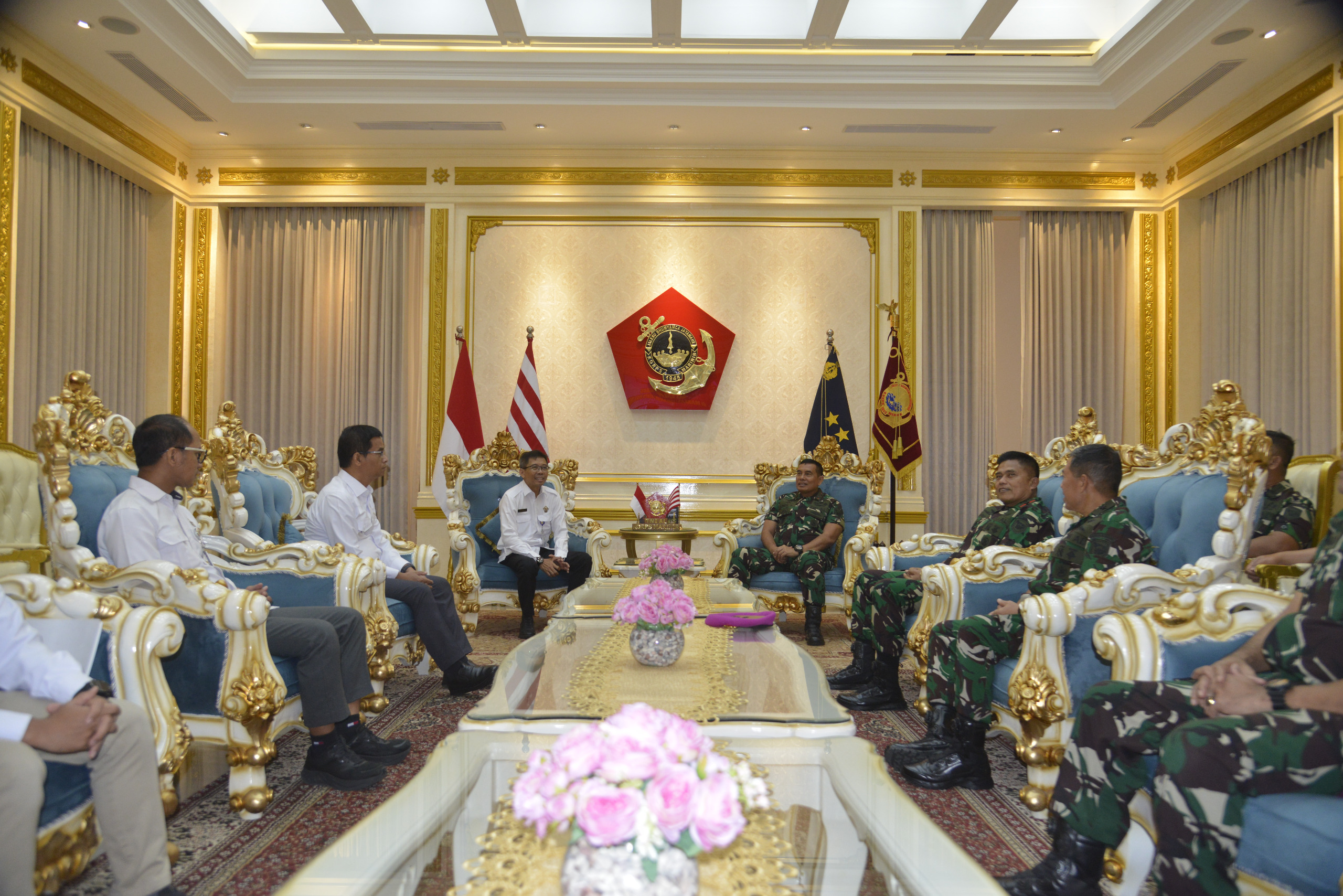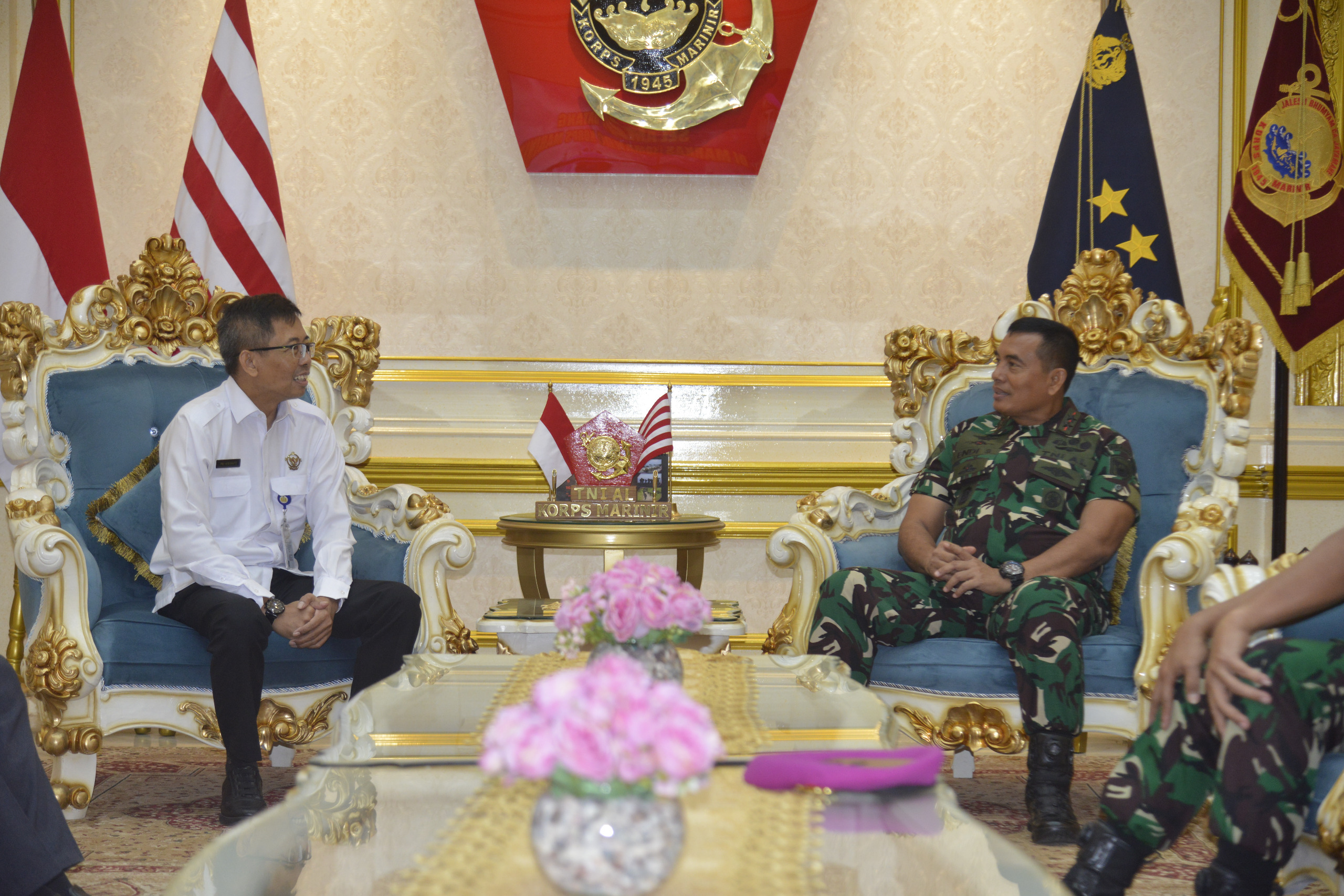 Dispen Kormar TNI Angkatan Laut (Jakarta). Komandan Korps Marinir (Dankormar) Mayor Jenderal TNI (Mar) Dr. Endi Supardi, S.E., M.M., M.Tr.Opsla., CHRMP., CRMP., terima Caurtesy Call dari Wakil Penanggung jawab 2 BPK RI Bapak Pri Heriyanto, S.E., M.M., M.A., Ak., CA., CSFA., bertempat di Admiral Room Gedung Utama Mako Kormar Jl. Prajurit KKO Usman dan Harun No. 40 Jakarta Pusat, Senin (17/03/2025).