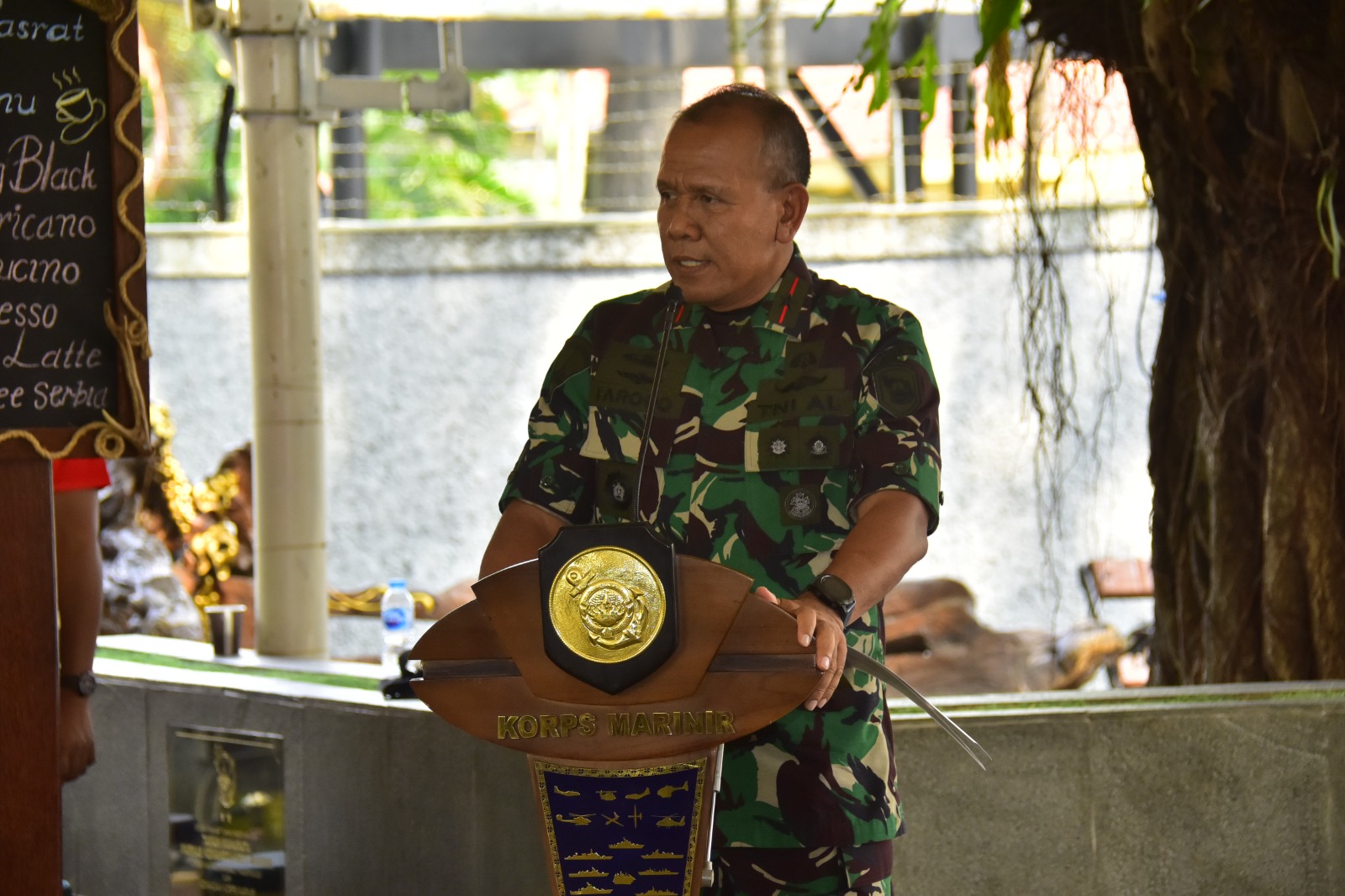 Dispen Kormar, TNI Angkatan Laut (Jakarta). Komandan Korps Marinir (Dankormar) Mayor Jenderal TNI (Mar) Endi Supardi, S.E., M.M., M.Tr.Opsla, CHRMP., CRMP., didampingi Wakil Komandan Korps Marinir (Wadan Kormar) Brigjen TNI (Mar) Suherlan, dan Inspektur Korps Marinir (Irkormar) Kolonel Marinir Tri Subandiyana, S.H., terima paparan kesiapan Latpratugas Satgasmar Puter XXVIII, Pam Ambalat XXX Tahun 2024, Paparan kesiapan pelaksanaan Pekan Olahraga Wilayah Barat dan Kesiapan Kontingen Korps Marinir Wilayah barat dan wilayah Timur Tahun 2024 di Taman Wanarata Mako kormar Jl. Prajurit KKO Usman dan Harun No.40 Kwitang Jakarta Pusat, Rabu (08/05/2024).