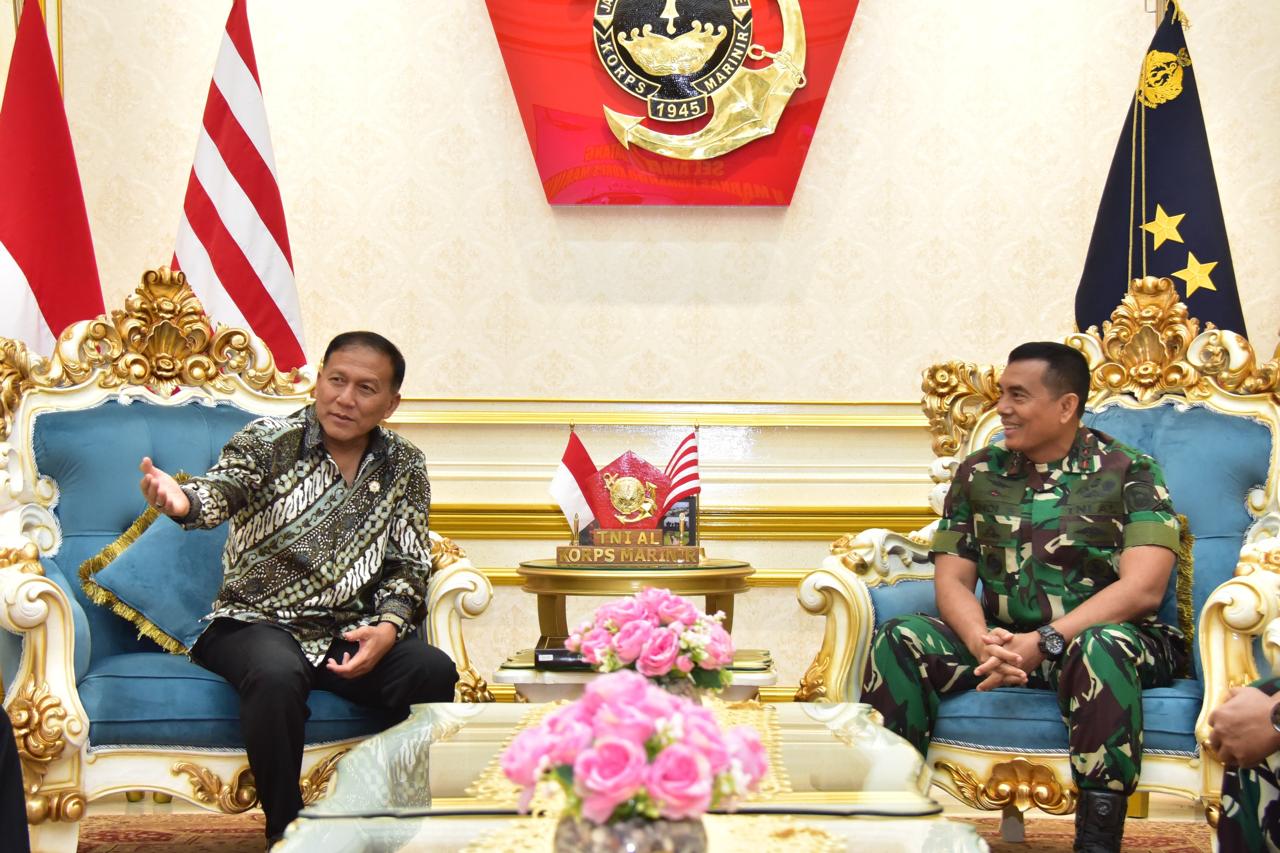 Kunjungan Ketua Yayasan Bhumyamca di Markas Komando Korps Marinir di sambut hangat oleh Komandan Korps Marinir,