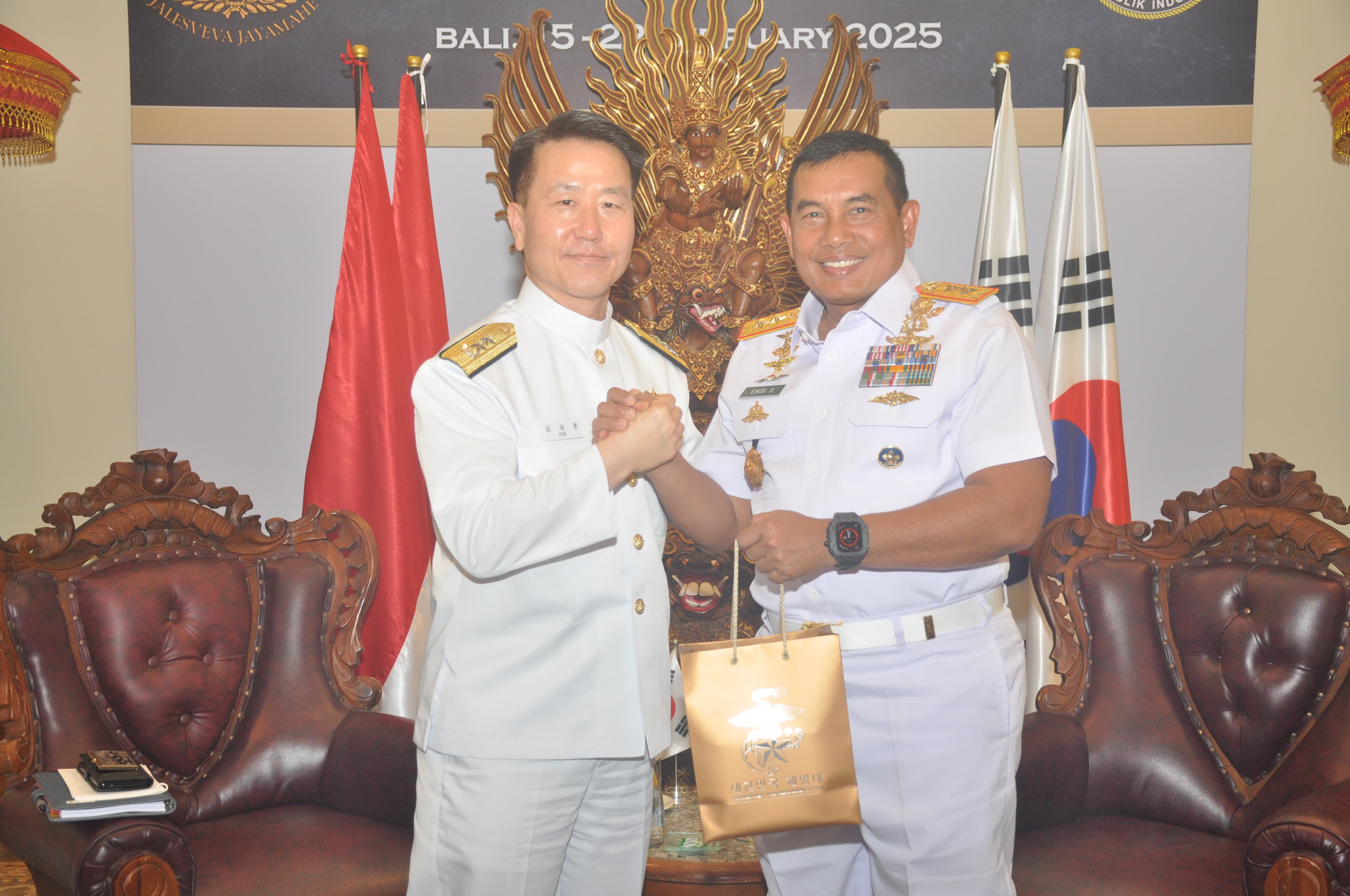 Dispen Kormar TNI Angkatan Laut (Bali). Komandan Korps Marinir (Dankormar) Mayor Jenderal TNI (Mar) Dr. Endi Supardi, S.E., M.M., M.Tr.Opsla., CHRMP., CRMP., menerima paparan tentang Korean Amphibious Assault Vehicle (KAAV) dari Delegation South Korea bertempat di Klungkung Room, Westin Hotel Nusa Dua, Bali. Sabtu (15/02/2025).