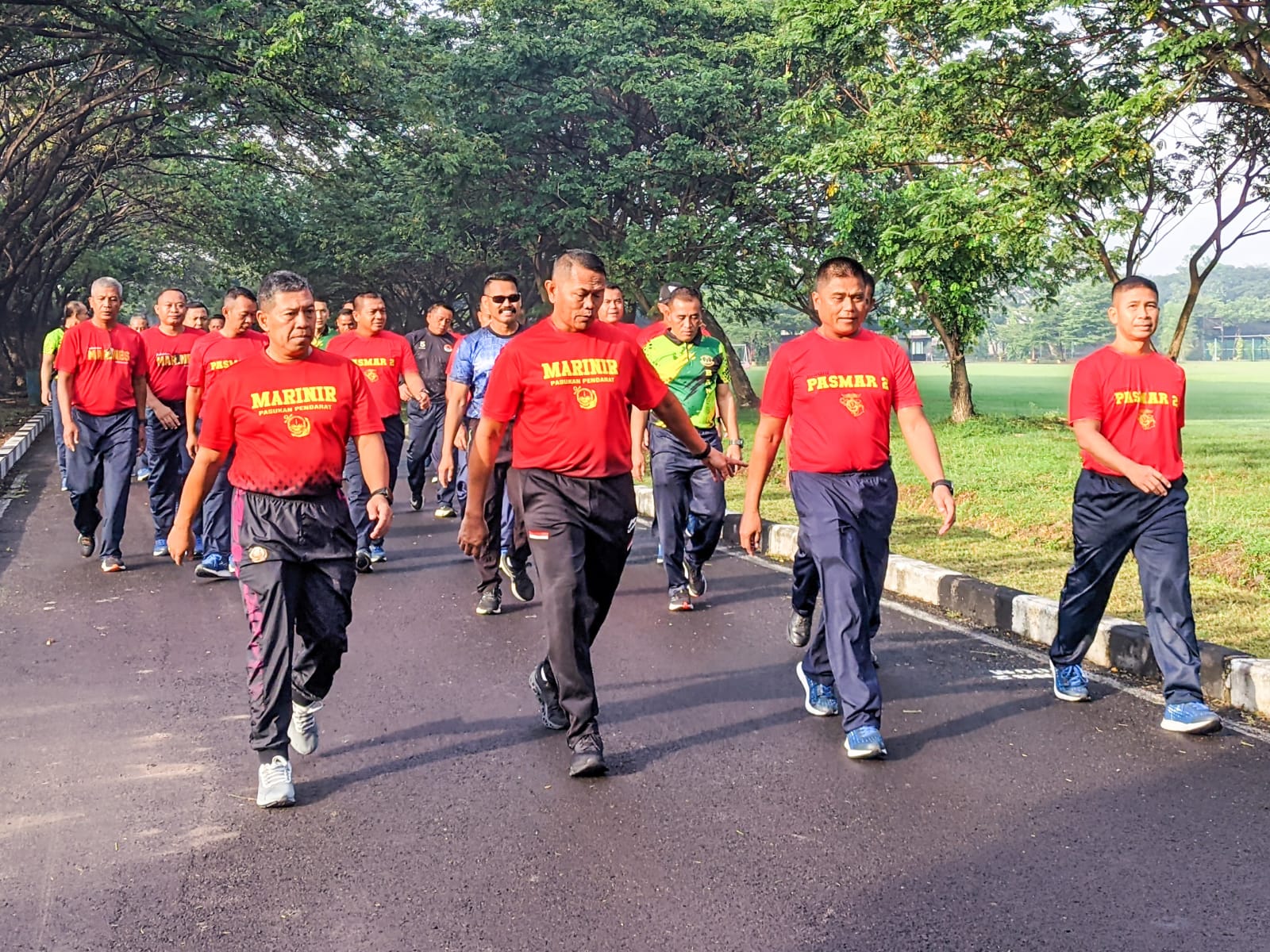 TNI AL, Dispen Kormar (Sidoarjo),- Dalam rangka menjalin Silaturahmi Pejabat Utama Marinir Wilayah Timur Wakil Komandan Korps Marinir Brigjen TNI (Mar) Suherlan melaksanakan olahraga bersama di Kesatrian Marinir Gedangan, Sidoarjo. Kamis (04/07/2024).