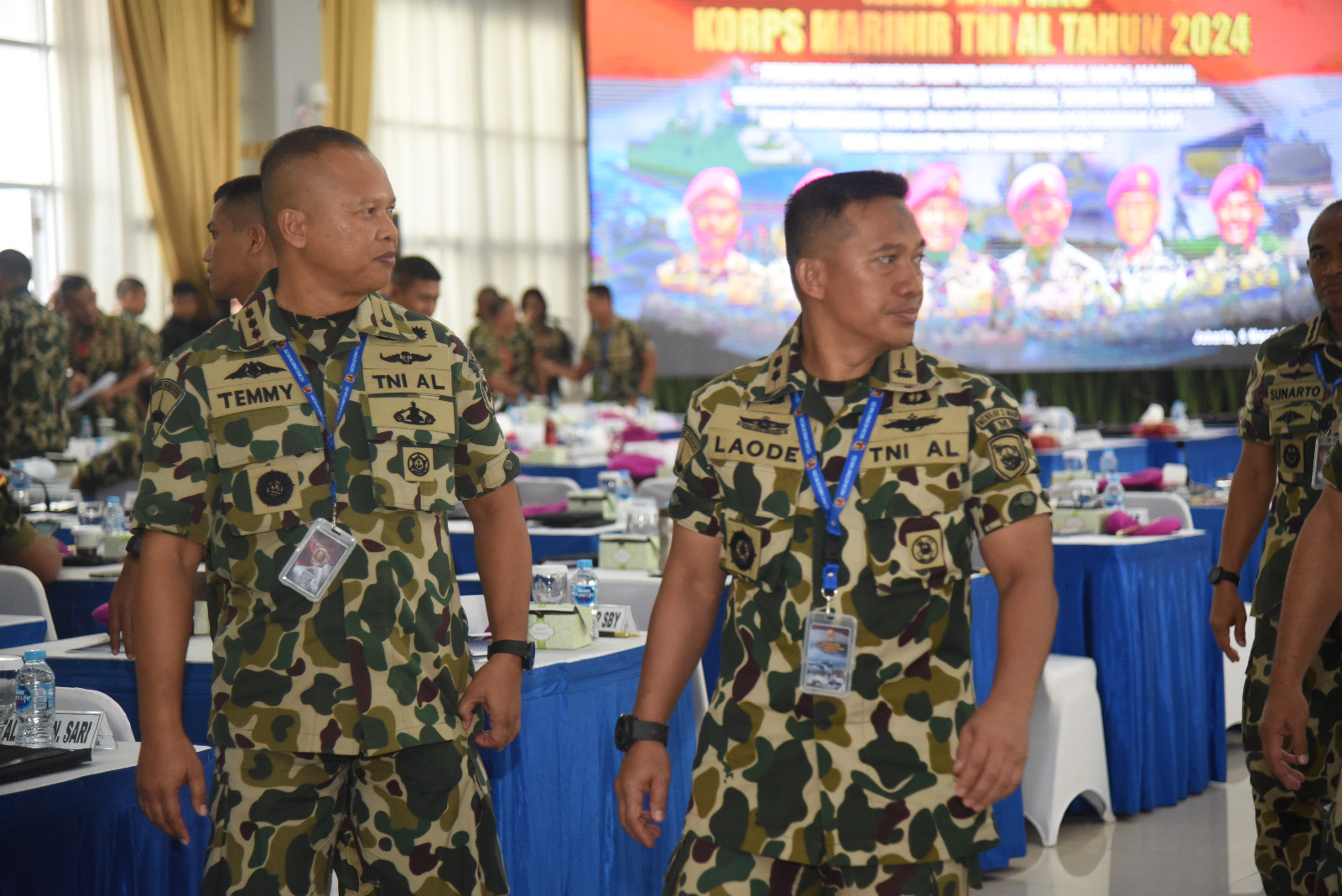 Dispen Kormar, TNI Angkatan Laut (Jakarta). Komandan Resimen Kavaleri 2 Marinir Letkol Mar La Ode Jimmy Herizal Rahman, M.Tr.Hanla., M.M., mengikuti Rapat Komando (Rako) dan Apel Komandan Satuan (AKS) Korps Marinir Tahun 2024 yang dilaksanakan di Gedung Graha Marinir Markas Komando Korps Marinir (Mako Kormar). Jalan Prajurit KKO Usman dan Harun No 40 Kwitang Jakarta Pusat. Selasa (05/03/2024).