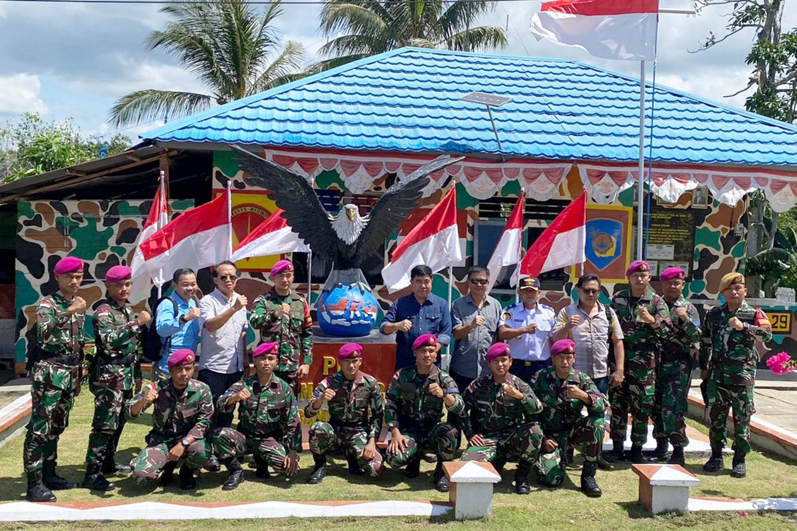 Selanjutnya Direktur C Bais Mabes TNI beserta rombongan menuju ke Kabupaten Nunukan untuk mengunjungi Lanal Nunukan dan Pos Kotis Satgas Pamtas Yon Arhanud 08/Mbc