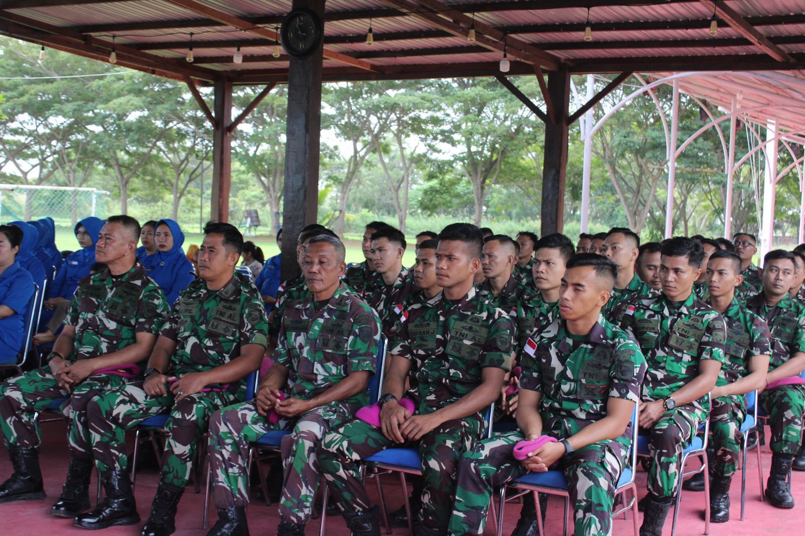 TNI AL, Dispen Korps Marinir (Merauke). Dalam rangka menjaga dan memonitoring seluruh prajurit, Mayor Marinir Deni Kusmana selaku Danyonmarhanlan XI memberikan pengarahan atau jam Komandan kepada seluruh prajurit dan Jalasenastri di Pendopo Yonmarhanlan XI, JL. Diko 1 Trans Irian Wasur, Rimba Jaya, Distrik Merauke, Kab. Merauke, Papua Selatan. Selasa (02/07/2024).