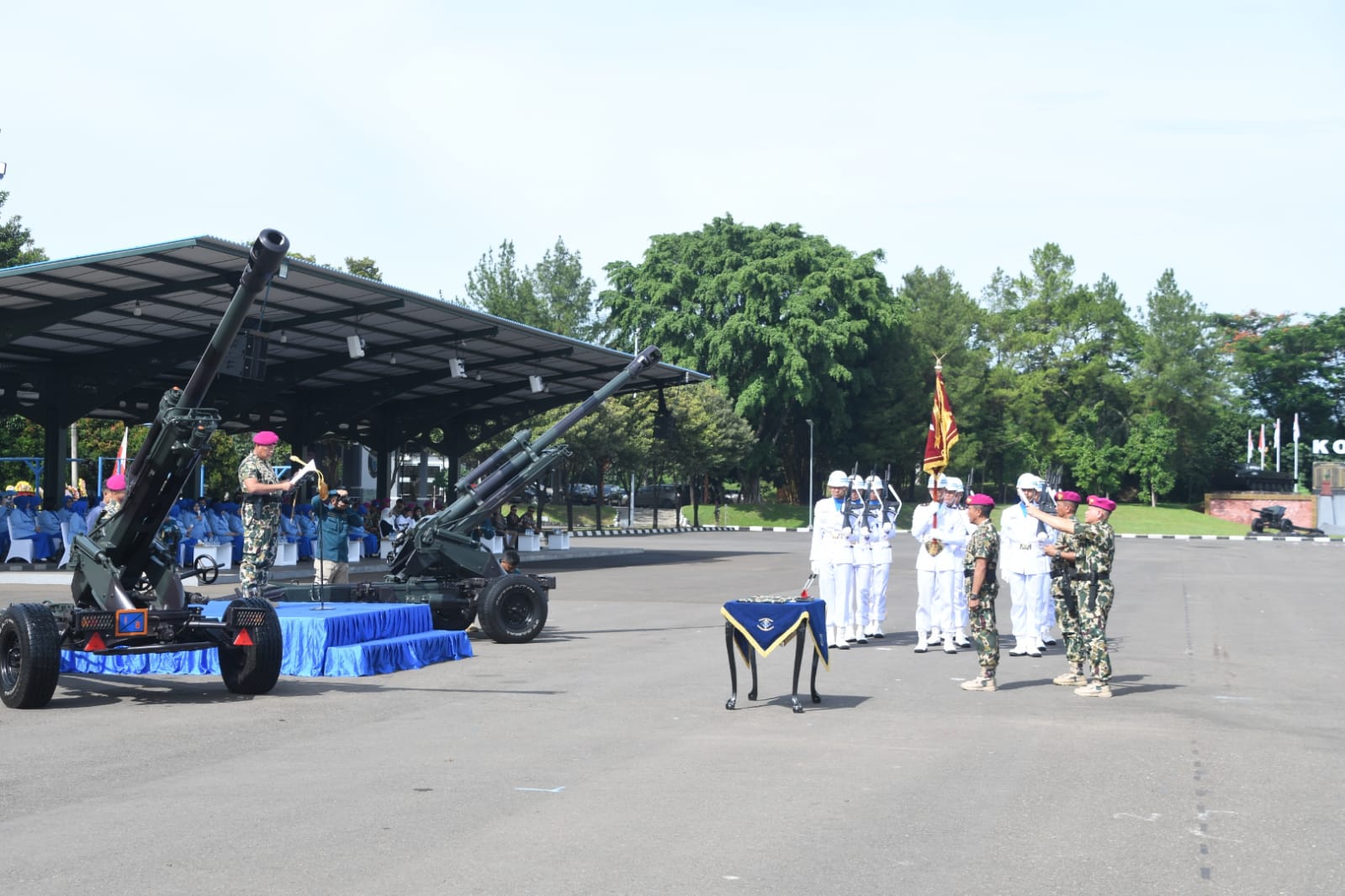 Bertindak sebagai Inspektur Upacara Komandan Korps Marinir Mayjen TNI (Mar) Dr. Endi Supardi., S.E., M.M., M.Tr.Opsla., CHRMP., CRMP., dan sebagai Komandan Upacara Mayor Mar Tamyasin Hehanussa.