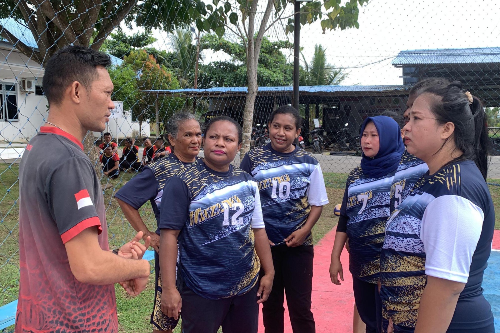 Danyonmarhanlan XI Saksikan Pertandingan Bola Voli Jalasenastri Yonmarhanlan XI Dan Bhayangkari Sat Brimob Merauke