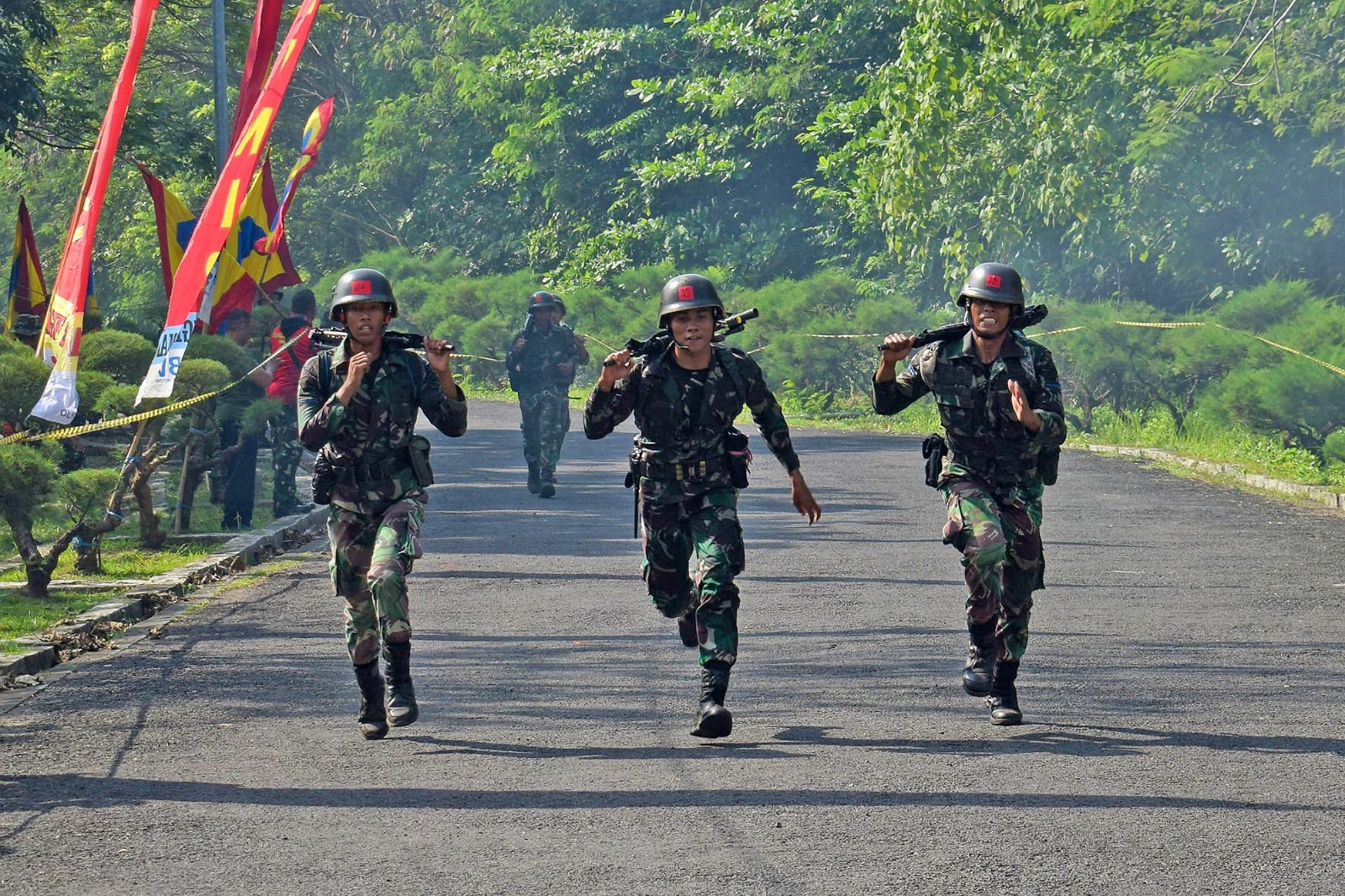 Dengan Penuh Semangat Prajurit Petarung Yonif 1 Marinir Laksanakan Try Out Binsat Materi Croos Country