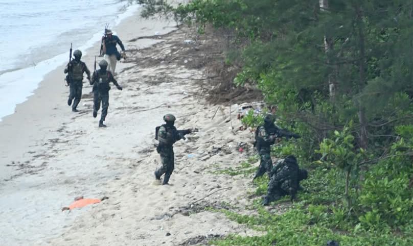 Dispen Kormar, TNI Angkatan Laut. (Dabosingkep). Di Daerah Latihan Dabosingkep, Komandan Korps Marinir (Dankormar) Mayor Jenderal TNI (Mar) Endi Supardi, S.E., M.M., M.Tr.Opsla., CHRMP., CRMP. mendampingi Kepala Staf Angkatan Laut (Kasal) Laksamana TNI Dr. Muhammad Ali, S.E., M.M., M.Tr.Opsla. meninjau Latihan Pasukan Khusus TNI Angkatan Laut (Latpassusla) bertempat di Pantai Todak, Dabo Singkep, Kepulauan Riau, Sabtu (14/12/2024).