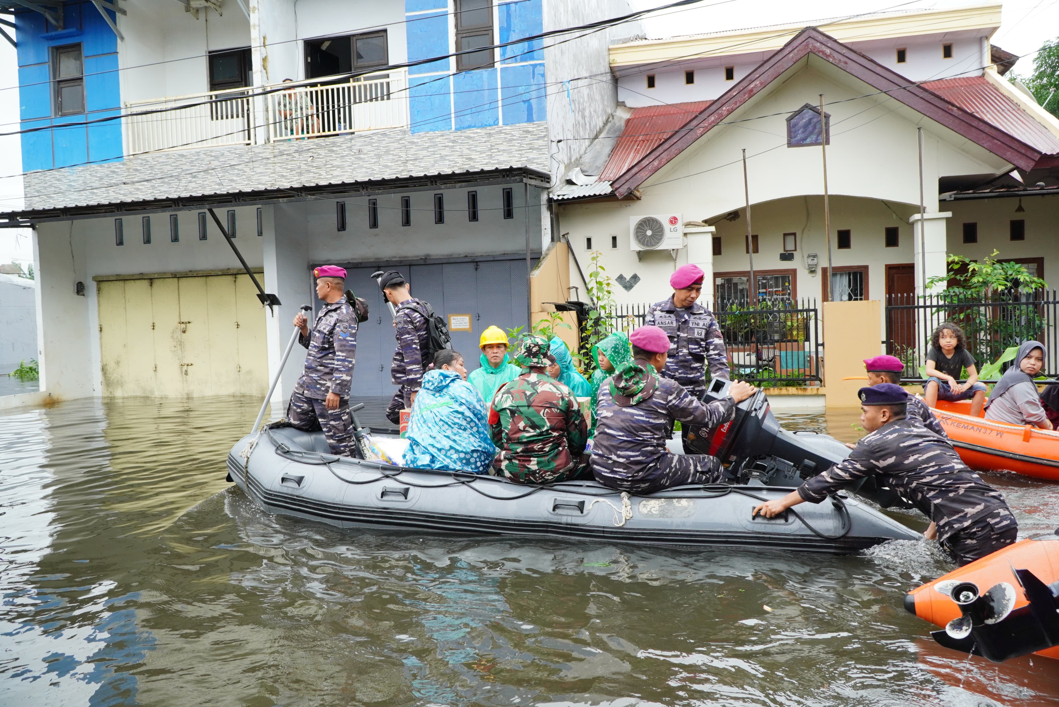 Dispen Kormar, TNI Angkatan Laut (Makassar). Prajurit Korps Marinir dari Batalyon Marinir Pertahanan Pangkalan (Yonmarhanlan) VI Makassar, bekerja sama dengan tim SAR yang terdiri dari TNI/POLRI dan BPBD, melaksanakan operasi pencarian, evakuasi, serta memberikan bantuan logistik untuk meringankan beban warga yang terdampak banjir di Kecamatan Manggala, Kota Makassar, Senin (23/12/2024).