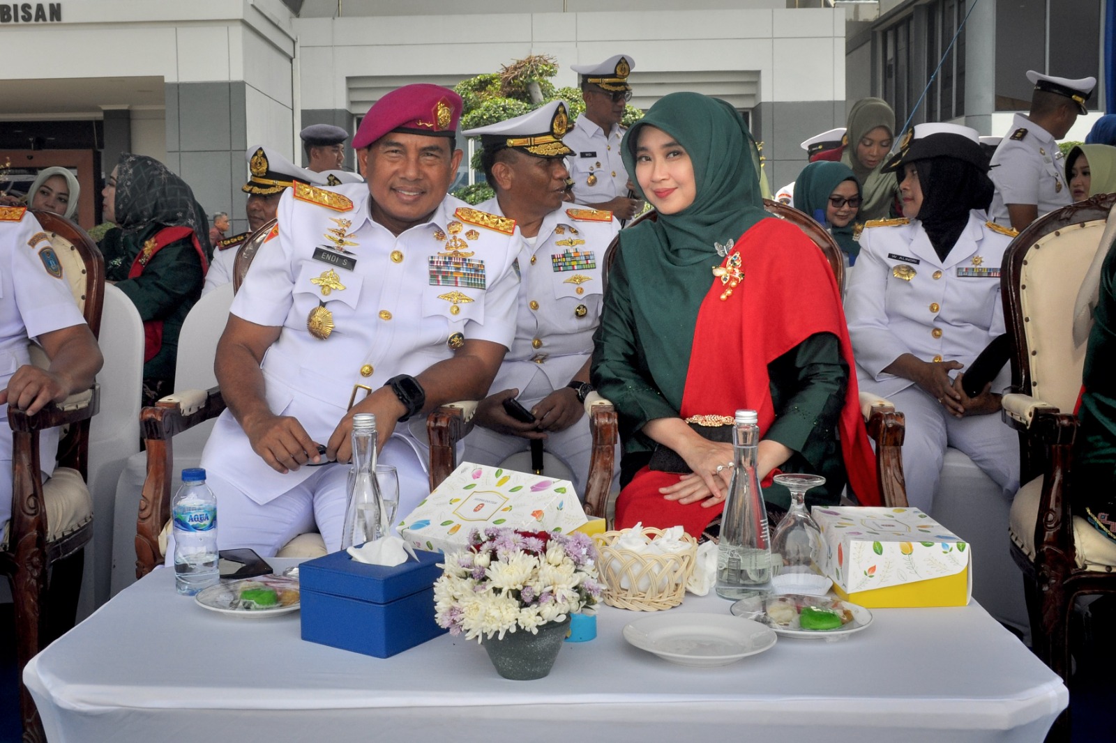 Turut hadir pada kegiatan, Wakasal Laksamana Madya TNI Erwin S. Aldedharma, S.E., M.M., M.Sc., beserta Wakil Ketua Umum Jalasenastri Ny. Ketty S. Aldedharma, para Pejabat Utama Mabesal beserta istri, Pangkotama TNI AL beserta istri dan Pemprov Muspida Tk. Provinsi beserta istri.