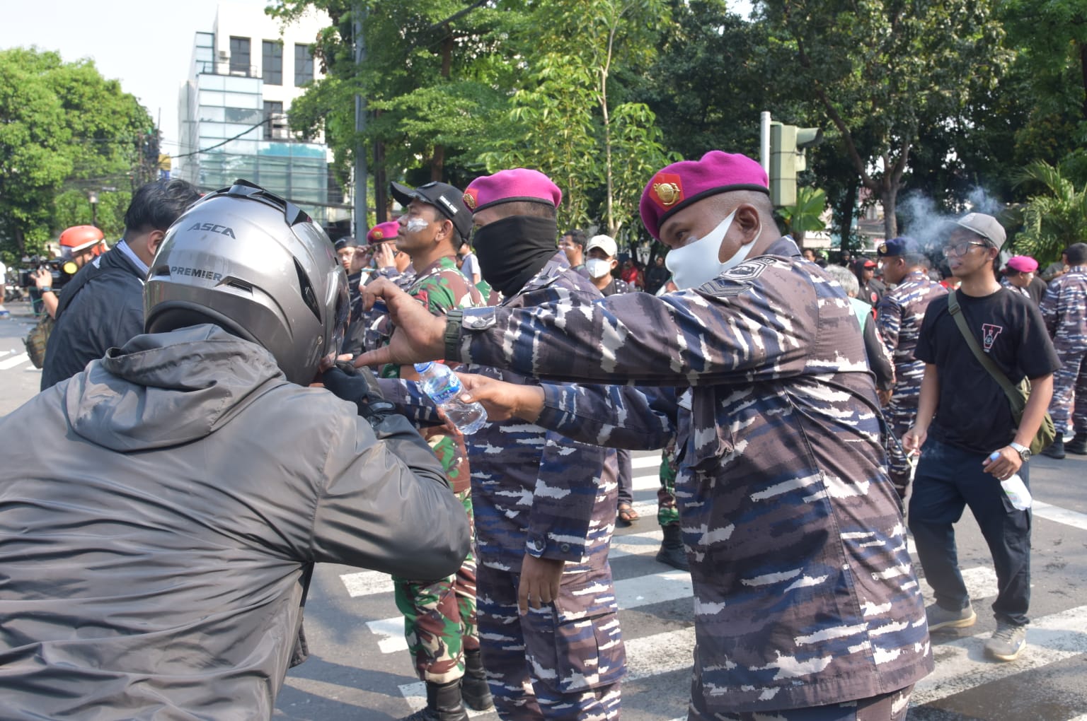 HUMANIS DI TENGAH RICUH, PRAJURIT MARINIR REDAM MASSA DENGAN PENDEKATAN PERSUASIF