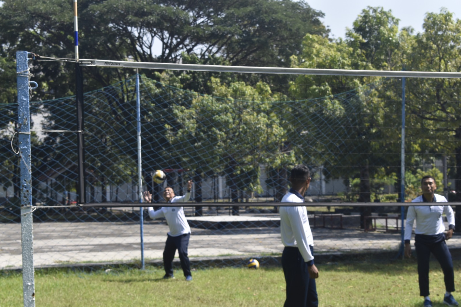 Jaga kebugaran Dan Imunitas Tubuh Prajurit Batalyon Kesehatan 2 Marinir melaksanakan Olahraga Voli