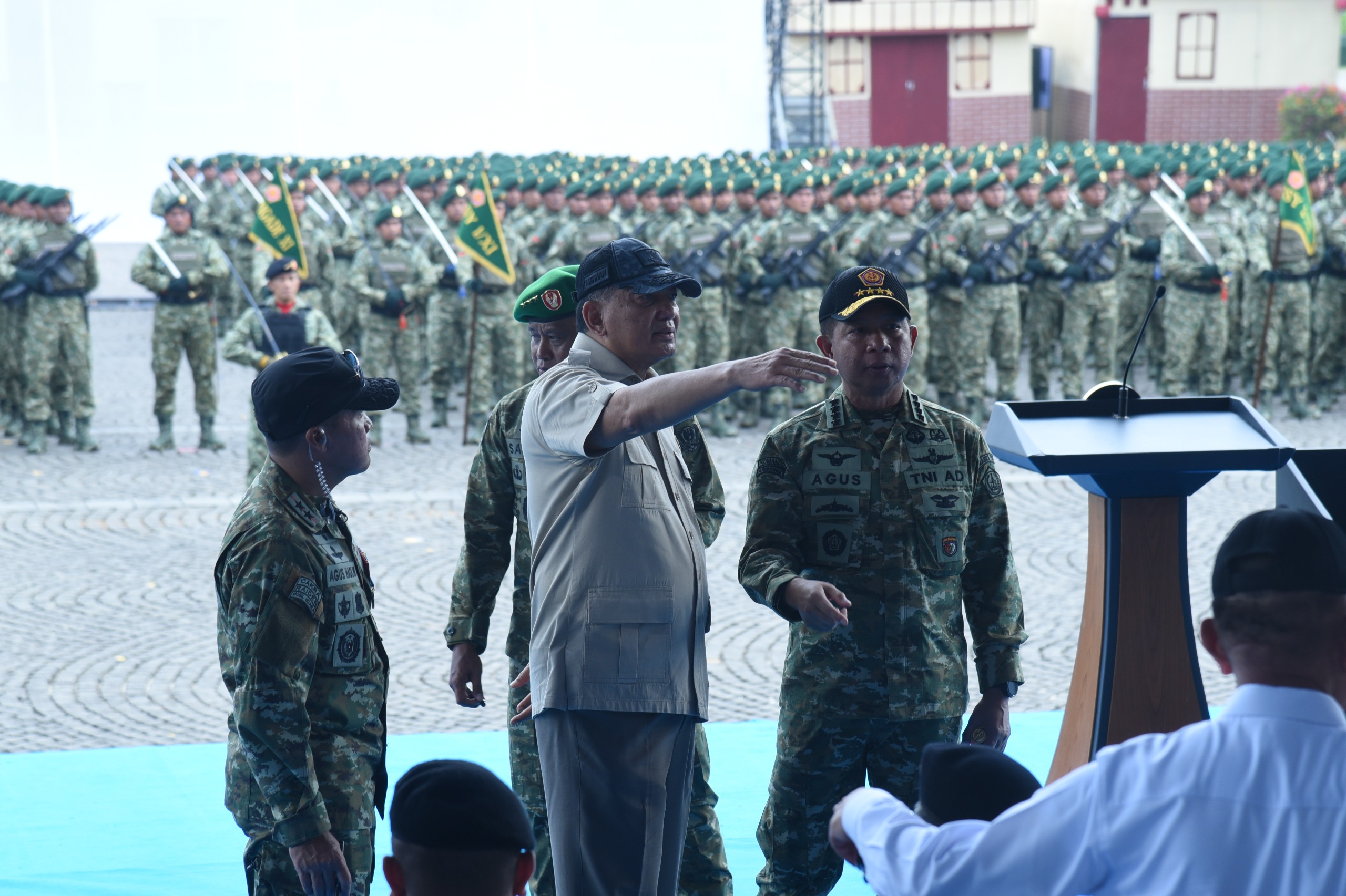 Dalam arahannya, Panglima TNI juga menekankan pentingnya disiplin dan sikap percaya diri. Ia meminta setiap prajurit, termasuk Korps Marinir, menjaga sikap terbaik di hadapan Presiden dan rakyat Indonesia pada puncak peringatan. âTatapannya tajam, perlihatkan kebanggaan kalian sebagai prajurit TNI,â tegasnya saat memeriksa barisan.