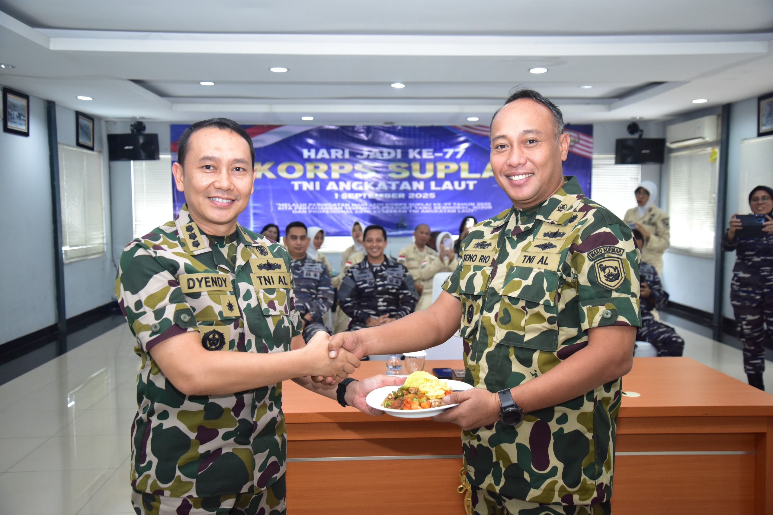 Acara Syukuran memperingati hari jadi Korps Suplai dipimpin langsung Kepala Dinas Keuangan Angkatan Laut (Kadiskual) Laksamana Pertama TNI Azil Sadagori Achmad, S.A.P., CRMP., melalui Video Conference yang berpusat di Selasar Denma Mabes TNI AL, dengan mengusung tema âMelalui peringatan hari jadi Korps Suplai ke-77 tahun 2025 kita pertahankan semangat Prajurit yang Bermoral, Jujur dan Profesional demi kejayaan TNI Angkatan Laut.
