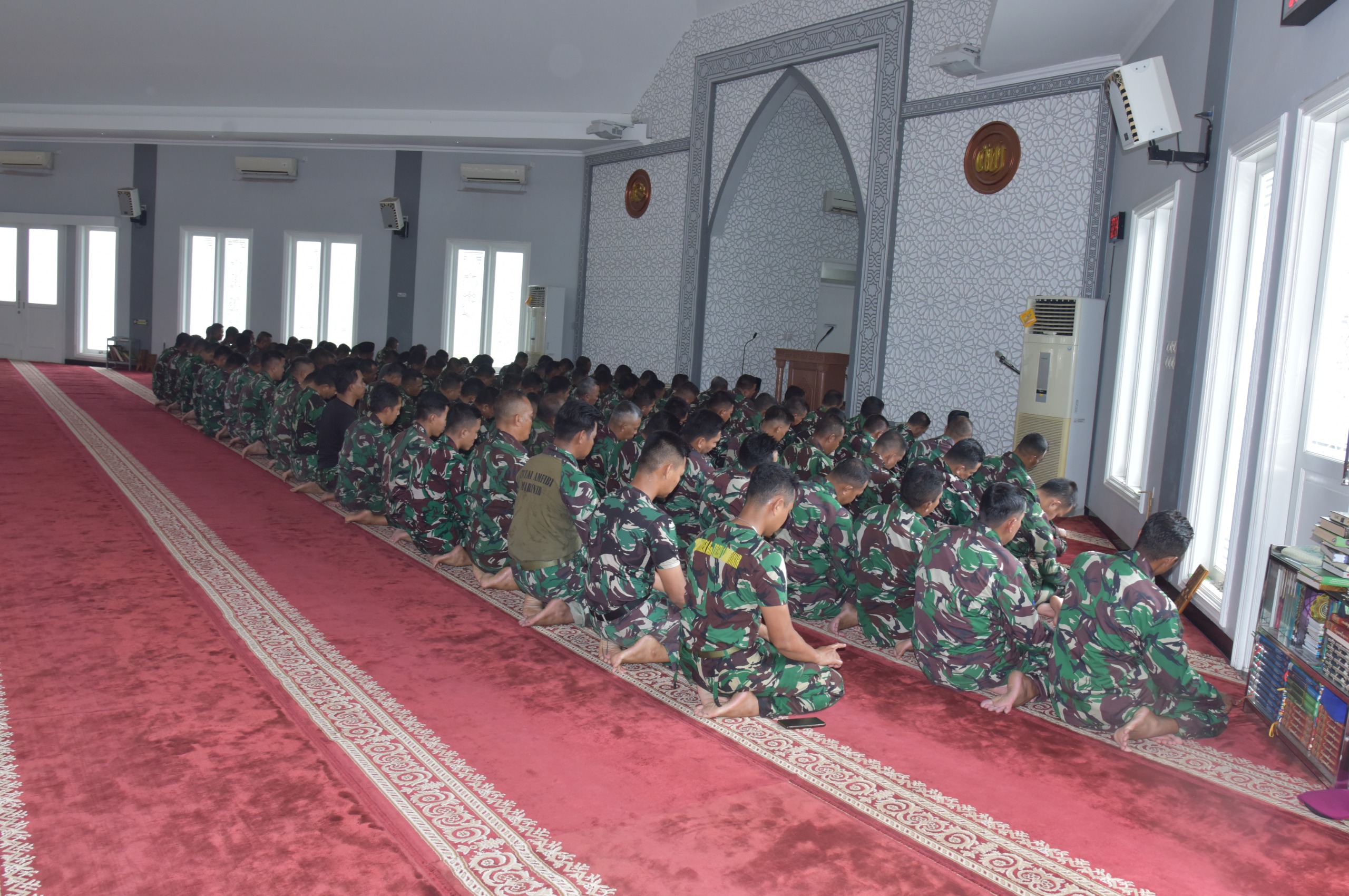 Dispen Kormar TNI Angkatan Laut (Jakarta). Kepala Staf Korps Marinir (Kas Kormar) Brigjen TNI (Mar) Muhammad Nadir, M.Tr.Opsla., memimpin kegiatan doa bersama yang diikuti oleh seluruh prajurit Korps Marinir di berbagai satuan dalam rangka menjaga keselamatan Prajurit Korps Marinir sebagai bentuk dukungan moril dan spiritual bagi para prajurit yang sedang melaksanakan tugas pengamanan unjuk rasa di berbagai wilayah, Kegiatan ini digelar di Mesjid At Taqwa Markas Komando Korps Marinir (Mako Kormar) Jalan Prajurit KKO Usman dan Harun No 40 Kwitang Jakarta Pusat. Minggu (31/08/2025)