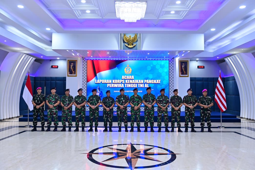 Dispen Kormar TNI Angkatan Laut. (Jakarta) Kepala Staf Korps Marinir (KAS Kormar) Mayor Jenderal TNI (Mar) Muhammad Nadir, M.Tr.Opsla., melaksanakan upacara laporan kenaikan pangkat perwira tinggi (Pati) yang diikuti oleh beberapa Pati TNI AL, upacara dipimpin langsung Kepala Staf Angkatan Laut (Kasal) Laksamana TNI Dr. Muhammad Ali, S.E., M.M., M.Tr.Opsla., bertempat di Wisma Elang Laut, Jalan Pangeran Diponegoro, Menteng, Jakarta Pusat, Kamis (25/09/2025).