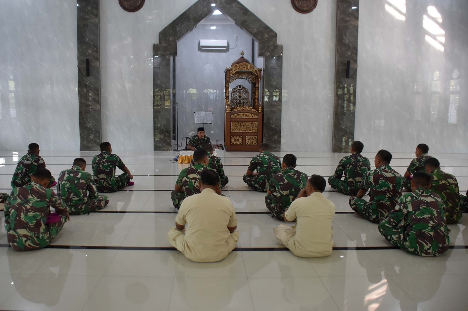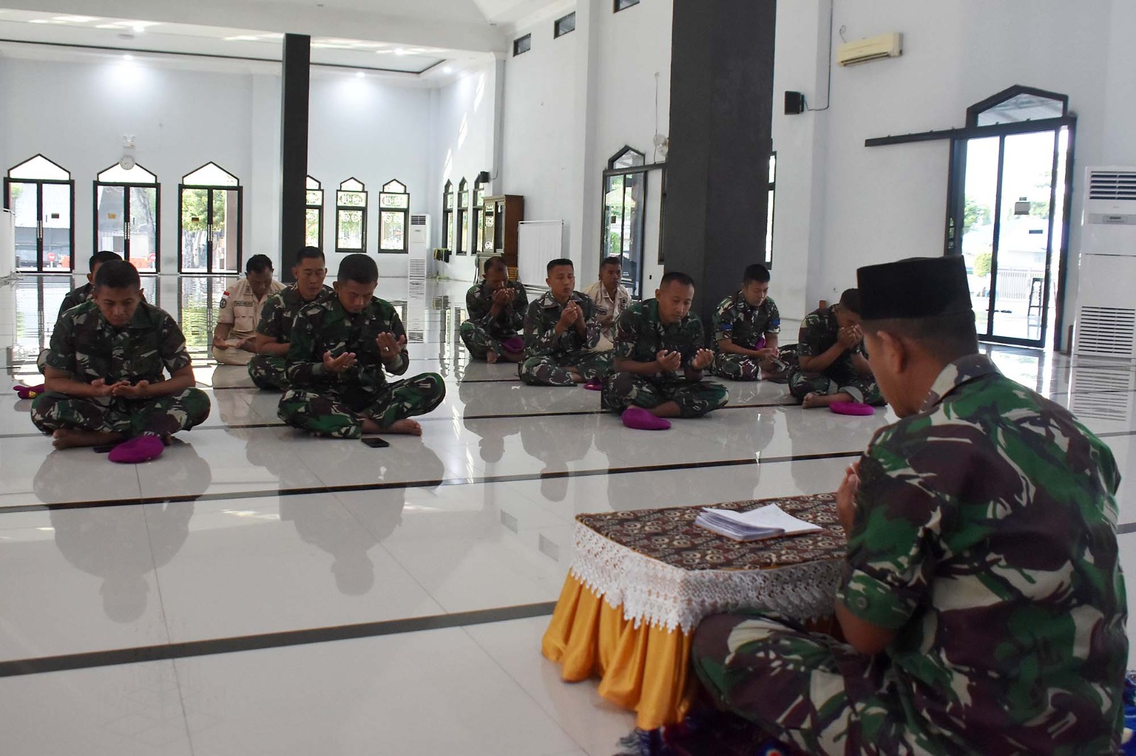 TNI AL, Dispen Kormar (Sidoarjo). Dalam rangka meningkatkan keimanan dan ketaqwaan kapada Allah SWT, Prajurit dan Pegawai Negeri Sipil (PNS) Brigif 2 Marinir melaksanakan kauseri agama di Masjid Jannatin Kesatrian Marinir R. Suhadi Gedangan, Sidoarjo, Jawa Timur. Senin (27/05/2024).