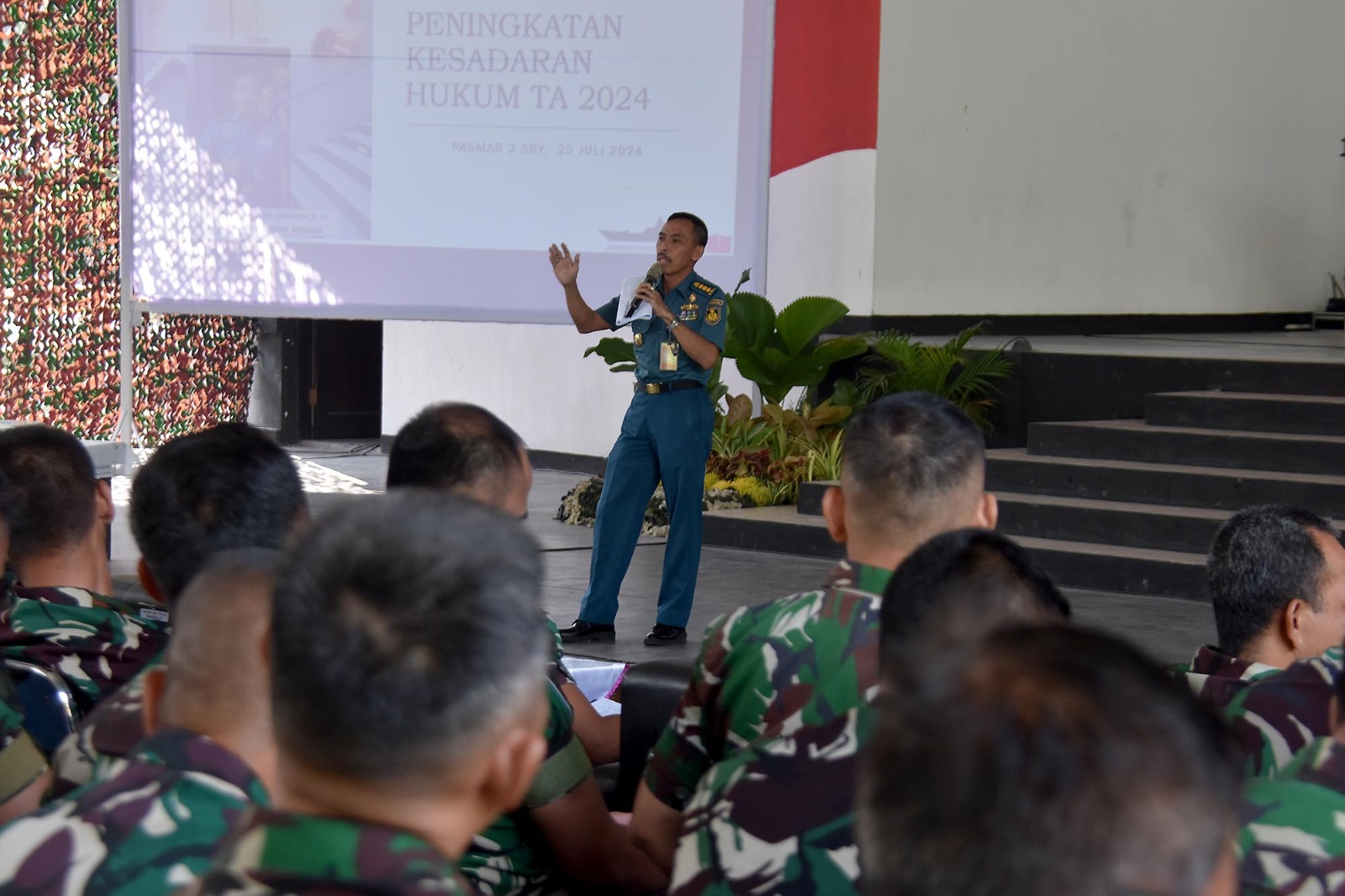 TNI Angkatan Laut, Dispen Kormar (Surabaya). Komandan Brigade Infanteri 2 Marinir Kolonel Marinir Arip Supriyadi, S.H., M.M., M.Tr.Hanla didampingi Ketua Cabang 2 Korcab Pasmar 2 Ny. Dwi Arip Supriyadi beserta prajurit Brigif 2 Marinir mengikuti Sosialisasi Hukum dan Personel dari Spersal dan Diskumal di Indoor Sport Kesatrian Marinir Sutedi Senaputra Karangpilang, Surabaya, Jawa Timur. Kamis (25/07/2024).