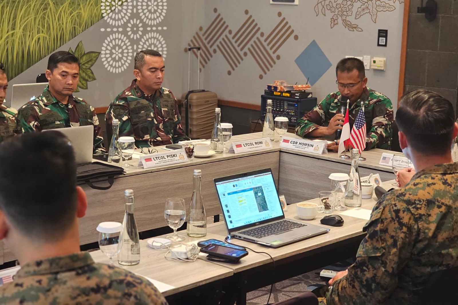 TNI AL, Dispen Kormar (Banyuwangi). Dalam rangka persiapan Latihan Bersama (Latma) Platoon Exchange TA 2024, Komandan Batalyon Infanteri 1 Marinir Letkol Marinir Roni Saputra, M.Tr.Opsla., mengikuti Final Meeting bersama U.S Marine Corps (USMC) di Hotel Kokoon Banyuwangi, Jawa Timur. Kamis (25/04/2024).