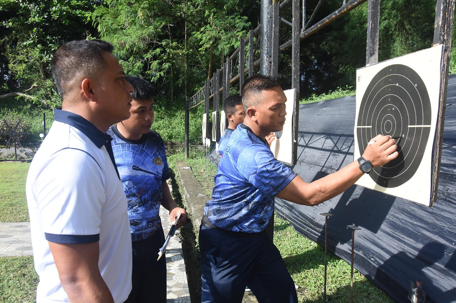 Kegiatan olahraga bersama kali ini diawali dengan melaksanakan peregangan, Senam Kesegaran Jasmani (SKJ) 88 dan diakhiri dengan menembak pistol.
