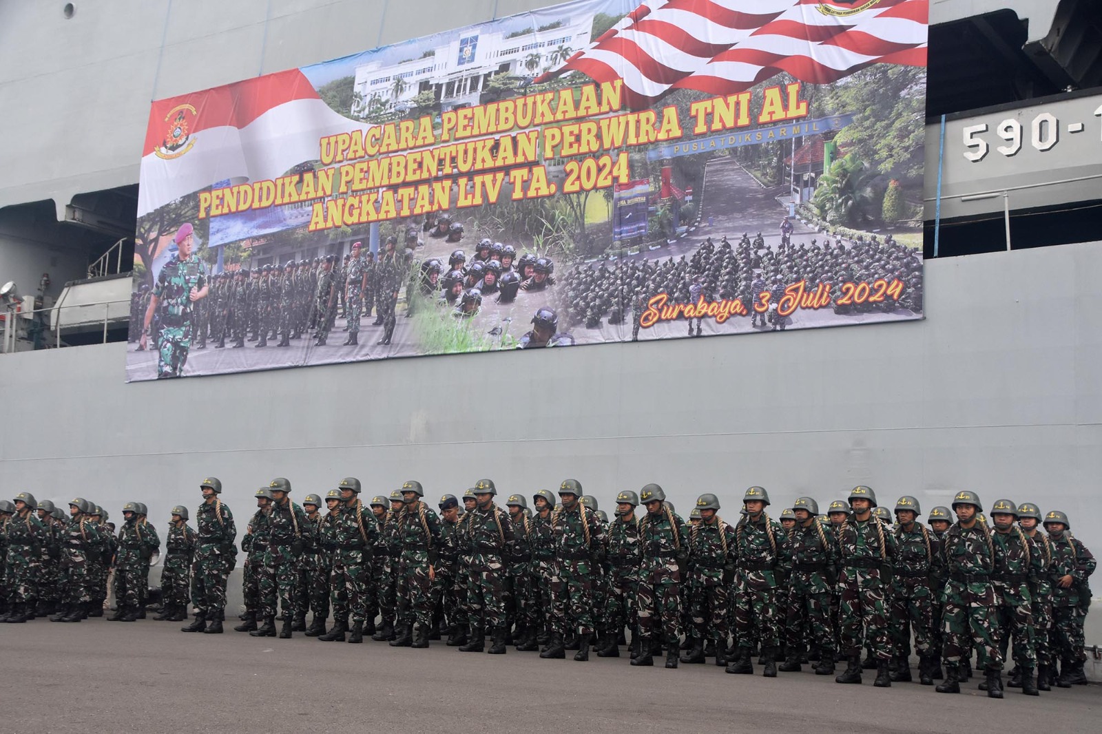 TNI AL, Dispen Kormar (Surabaya). Komandan Brigif 2 Marinir Kolonel Marinir Arip Supriyadi, S.H., M.M., M.Tr.Hanla yang diwakili oleh Perwira Staf Personel (Paspers) Brigif 2 Marinir Letkol Marinir Widi Permono, S.A.P., M.Tr.Opsla menghadiri upacara pembukaan Pendidikan Pembentukan Perwira (Diktukpa) TNI Angkatan Laut Angkatan 54 di Dermaga Semampir Baru Koarmada II Ujung, Semampir, Surabaya, Jawa Timur. Rabu (03/07/2024).