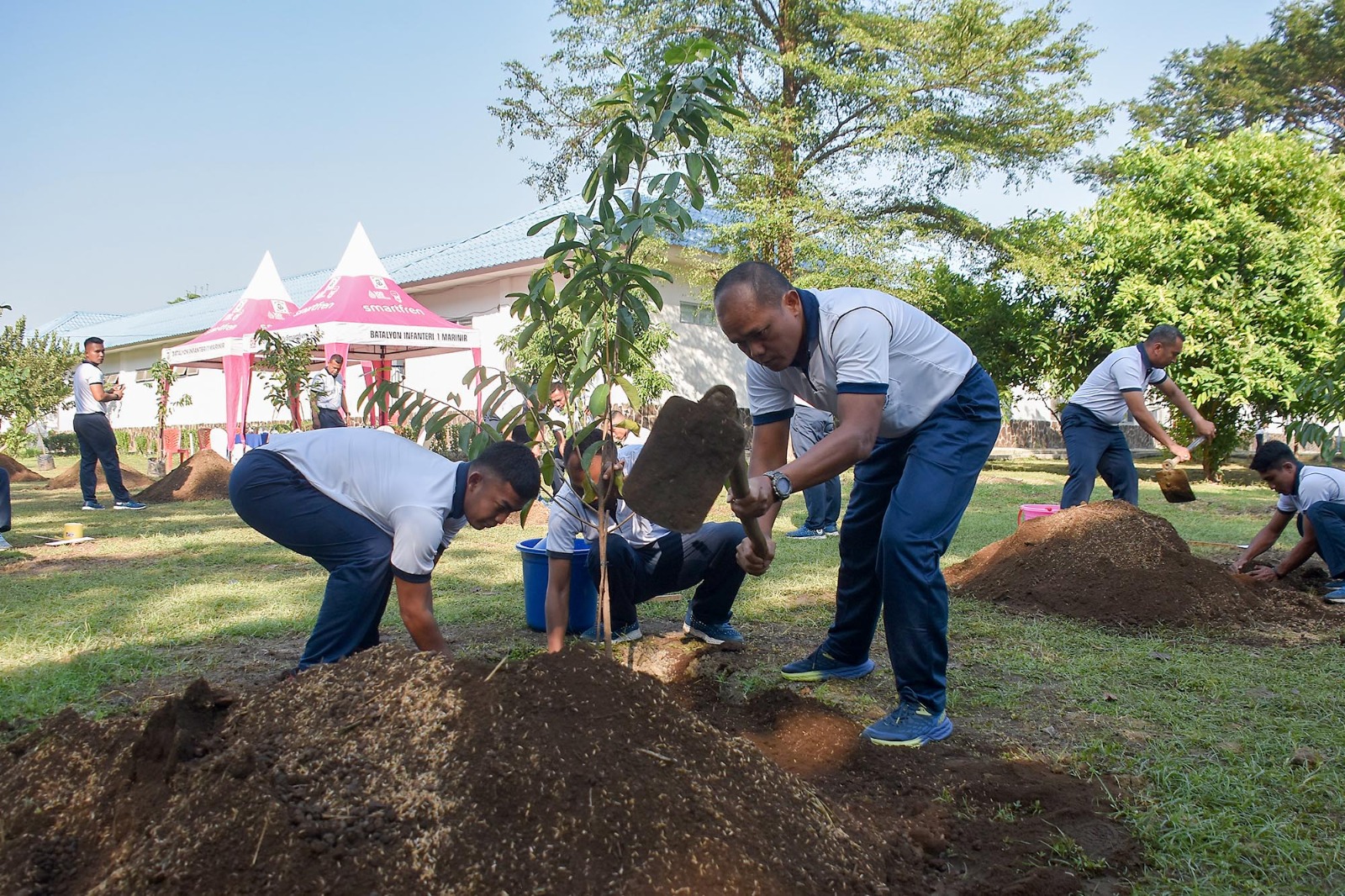 TNI AL, Dispen Kormar (Sidoarjo). Dalam rangka mendukung program ketahanan pangan dan penghijauan, Komandan Brigade Infanteri 2 Marinir Kolonel Marinir Arip Supriyadi, S.H., M.M., M.Tr.Hanla, melaksanakan penanaman bibit pohon buah Sirsak di Kesatrian Marinir R. Suhadi Gedangan, Sidoarjo, Jawa Timur. Jumat (21/06/2024).