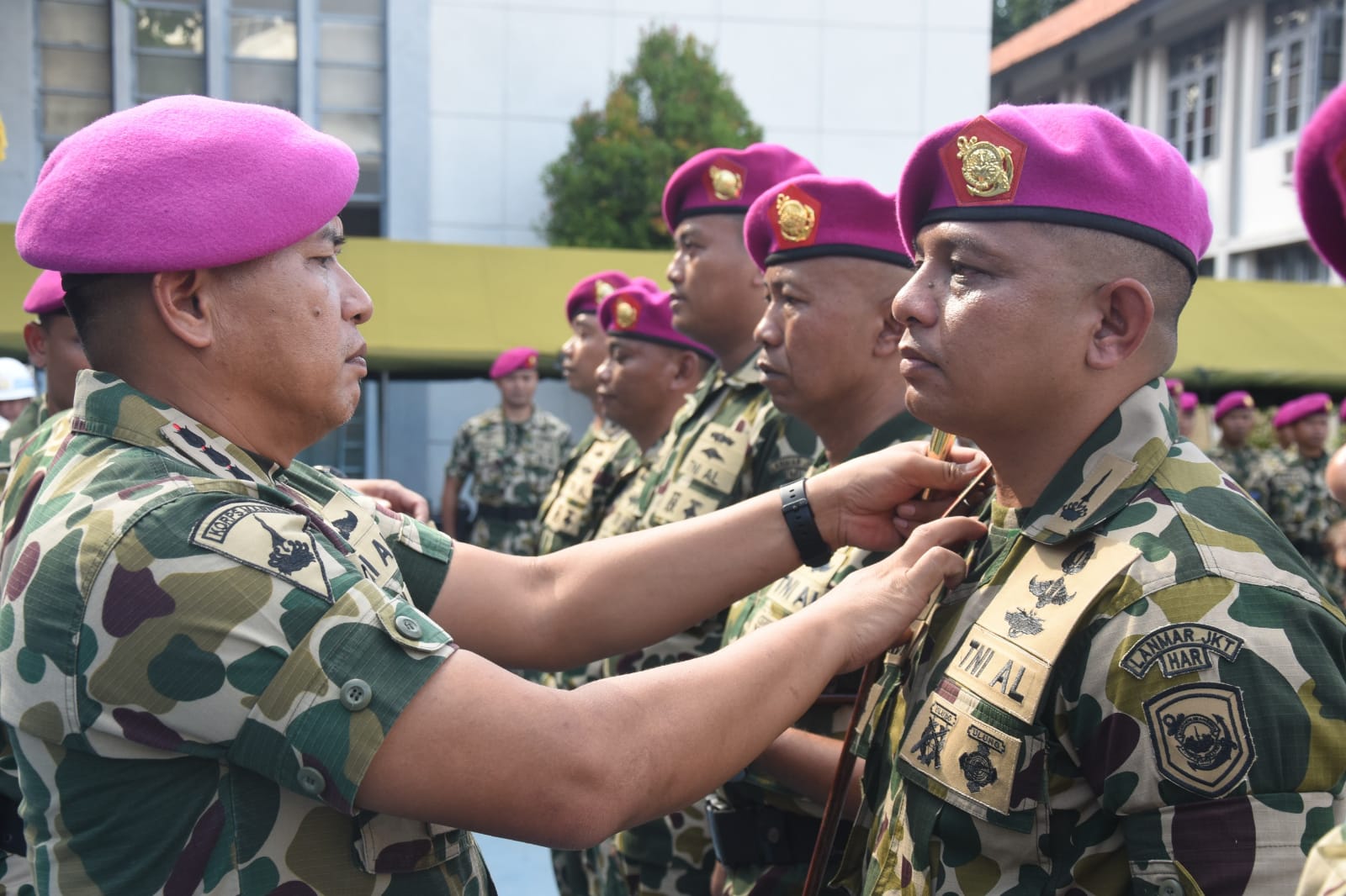 TNI Angkatan Laut. Dispen Kormar. Komandan Pangkalan Korps Marinir Jakarta (Danlanmar Jakarta) Kolonel Marinir Dian Suryansyah, S.E., M.Tr.Hanla., M.M. secara resmi memimpin Serah Terima Jabatan (Sertijab) Enam Jabatan Strategis di lingkungan Lanmar Jakarta yakni Penyerahan jabatan Wakil Komandan Lanmar Jakarta (Wadan Lanmar Jakarta), Perwira Staf Operasi Lanmar Jakarta (Pasops Lanmar Jakarta), Kepala Akuntansi Lanmar Jakarta (Ka Akun Lanmar Jakarta), Komandan Detasemen Pekerjaan Umum Lanmar Jakarta (Dandenpum Lanmar Jakarta), Komandan Detasemen Pemeliharaan Lanmar Jakarta (Dandenhar Lanmar Jakarta), serta penyerahan Jabatan Komandan Detasemen Musik Lanmar Jakarta (Dandensik Lanmar Jakarta) kepada Komandan Lanmar Jakarta bertempat di Lapangan Apel Lanmar Jakarta, Kesatrian Marinir Zainal Abidin, Jl. Kwini II no. 6 Jakarta Pusat, Senin (14 April 2025).